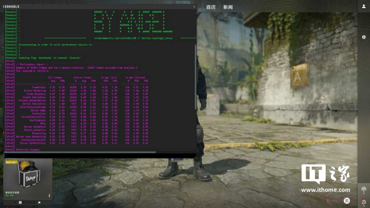 首先是在线竞技网游,这类游戏通常对 CPU 和内存的要求都很高。第一款游戏《CS2》,以 1080P 分辨率 + 高画质预设,运行创意工坊测试地图,游戏平均帧数为 448 帧,1% Low 172 帧。