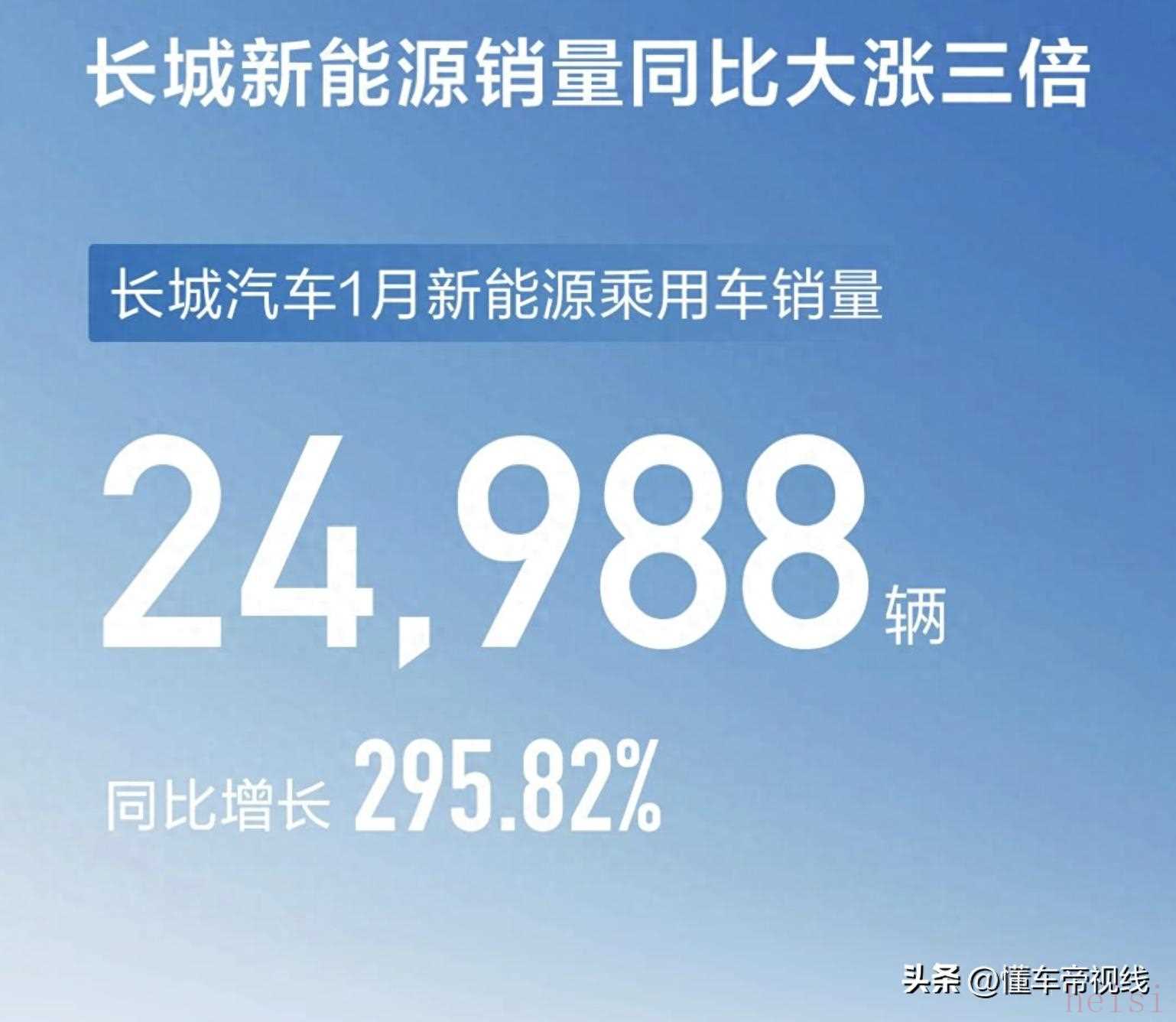 日前,长城汽车官方表示,1月新能源销量达到24988辆,同比增长295.82%,不过长城并未公布具体车型销量数据。