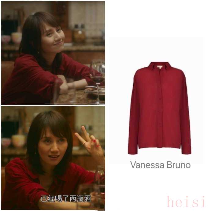 酒红色真的是一个万年受欢迎的颜色,在表现成熟、优雅、性感、韵味上有着不可撼动的地位。剧中微醺的袁泉,身着Vanessa bruno酒红色丝绸质地衬衫,半挽袖子,布料垂感十足、贴合皮肤,成熟优雅又洒脱浪漫的味道呼之欲出。衣柜里缺少这样的单品,还怎么能叫时髦精女孩呢!