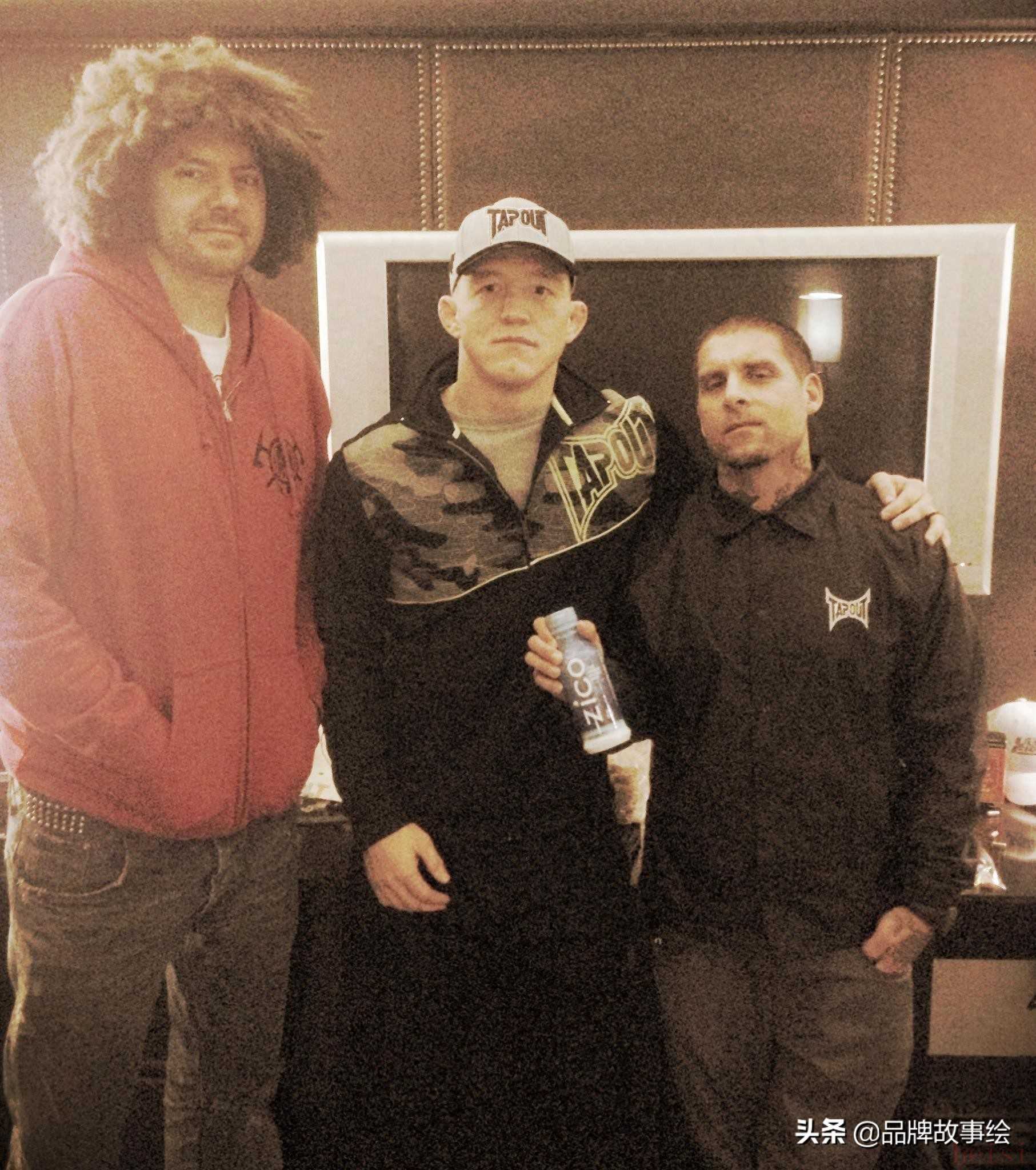 TAPOUT品牌诞生于1997年的南加州,当时MMA(综合格斗)运动也正在兴起并慢慢开始呈现于世人之间。每一个男性荷尔蒙和汗水爆发的画面让人们难以忘怀,在MMA快速发展的当下,三位超级粉丝(Mask、Punksaa、Akyskrape)也嗅到了一丝商机,于是开始在一辆福特野马的后备箱开始销售包含MMA信息内容的T恤。尽管当时的MMA还比较小众,但是垂直类目和场景营销的商业思维,让TAPOUT这个品牌也销售大火,就算从现在看来也是一种为产品品牌赋能最好的营销手段。而后这三位小伙努力打造这既小众而又垂直的品牌产品,在南加州小有名气。不仅仅是品牌的名声日渐兴盛,MMA也逐渐在全美国盛行。