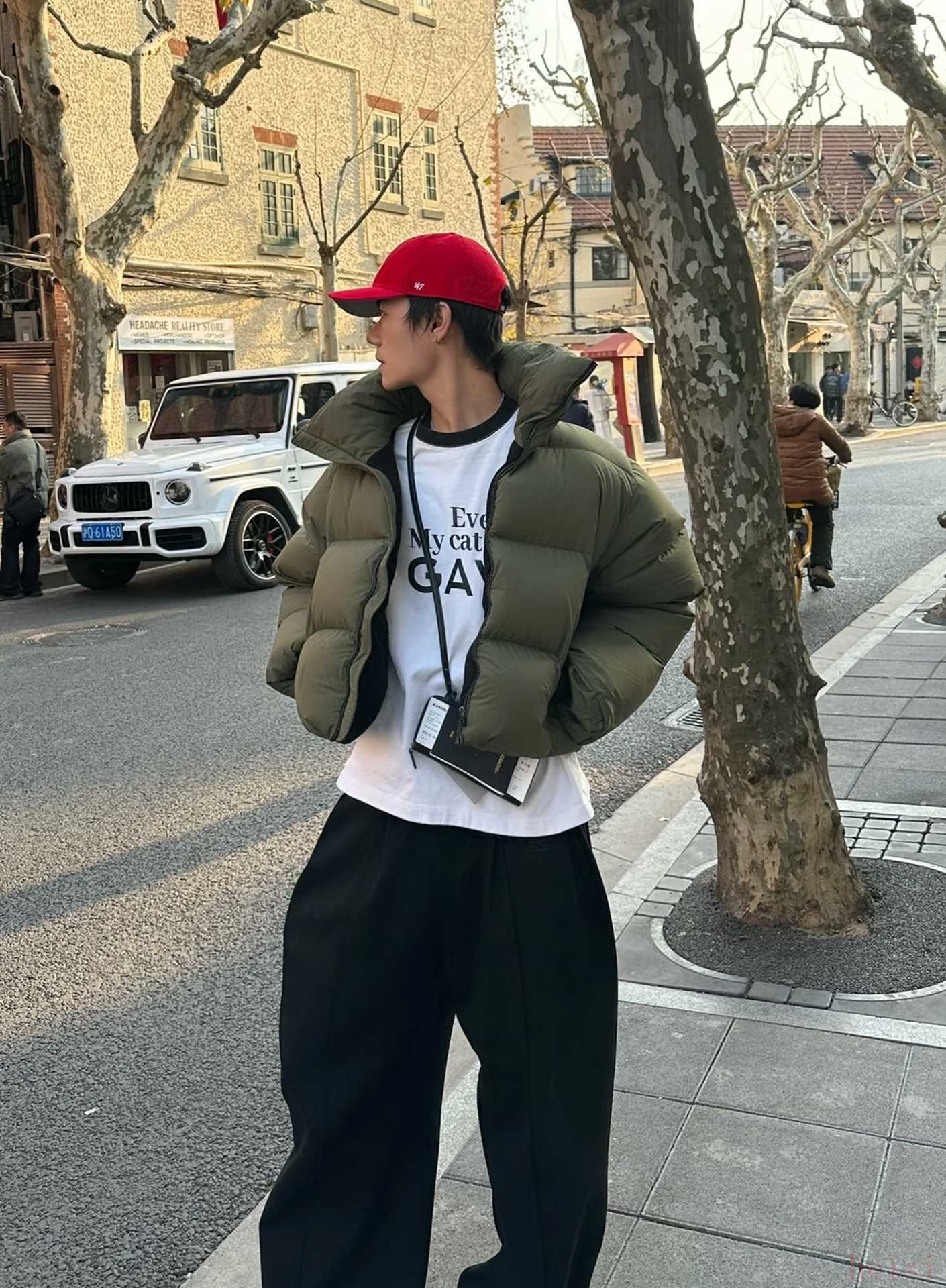 FAX羽绒服版型大多为短款,设计简洁利落,强调腰线位置,非常适合小个子男生。颜色以黑白灰、工装绿等基础色为主,既时尚又实用。