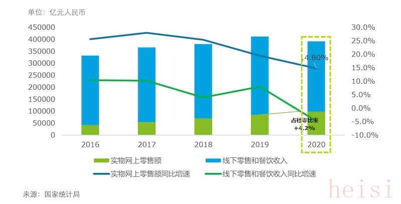 在消费品零售行业数字化的推动下, 网络零售对国内消费市场的贡献作用持续提升。5月25日,2021网络零售百强榜出炉,报告显示,2020年,实物网上零售额占社会消费品零售总额比重较2019年提升4.2%,达到24.9%。实物网上零售额仍然保持14.8%的增速。消费品零售行业数字化下产生的新业态、新模式迎合居民消费升级的需求,持续推动国内消费市场的提质扩容。
