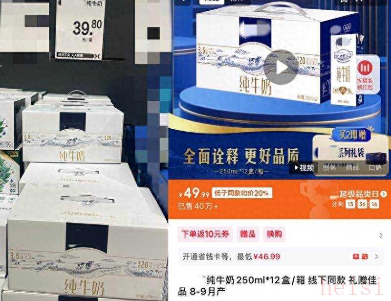 9月26日,北京某“硬折扣”超市与电商平台的同品牌、同规格牛奶价格对比图。(陈凯茵 制作)