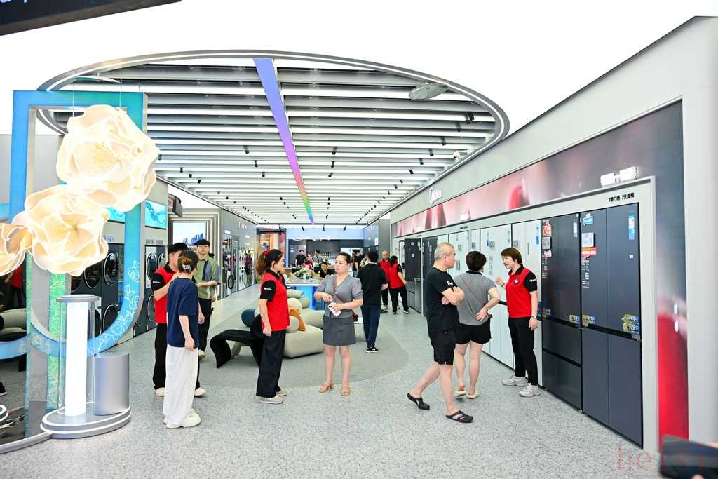 走进焕新后的京东MALL江北店可以看到,与传统卖场货架式陈列不同,这里有约30个主题体验区。在专业电竞馆,磁轴键盘、DIY主机等尖货一应俱全;咖啡长廊里,烘焙体验官手把手教顾客研磨咖啡和DIY点心;清洁电器体验区,扫地机器人在实景复刻的客厅里演示翻越台阶避障……“本次重装开业的京东MALL重庆江北店,是京东于2019年在线下布局的全球首家超级体验店,也是京东MALL的初代版,升级后5万平方米的空间有超过200个一线品牌、20万种商品。”京东电器重庆区域负责人介绍,本次升级不是简单翻新,而是京东在开业6年后进行的全方位战略升级,旨在打造一个融合前沿科技、家居家电一站置家与沉浸式体验的消费新地标。