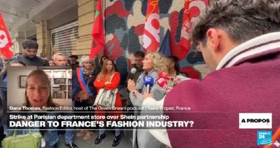 (图:10月中,法国当地电视台报道BHV工会对Shein入驻进行公开抗议)
