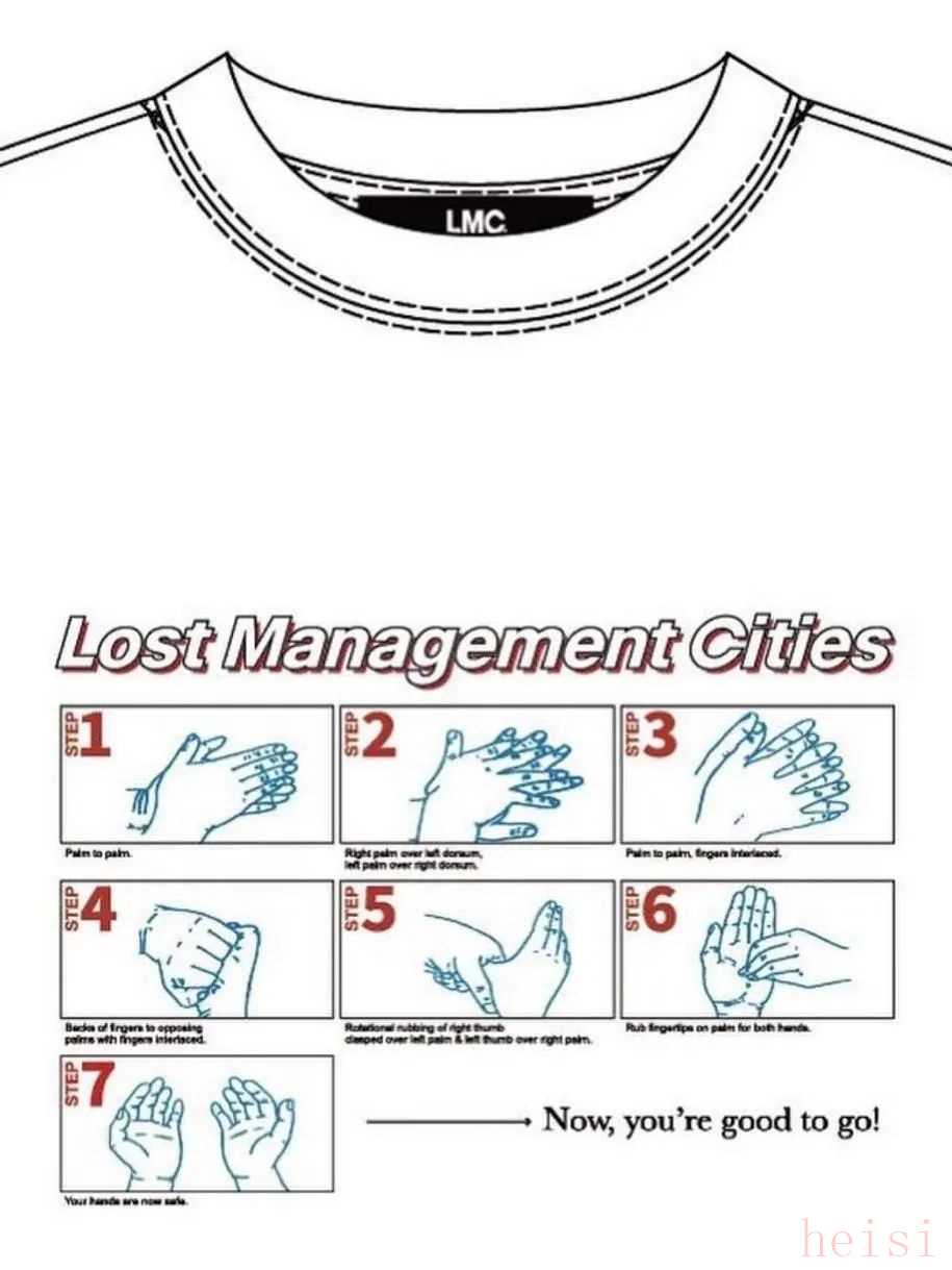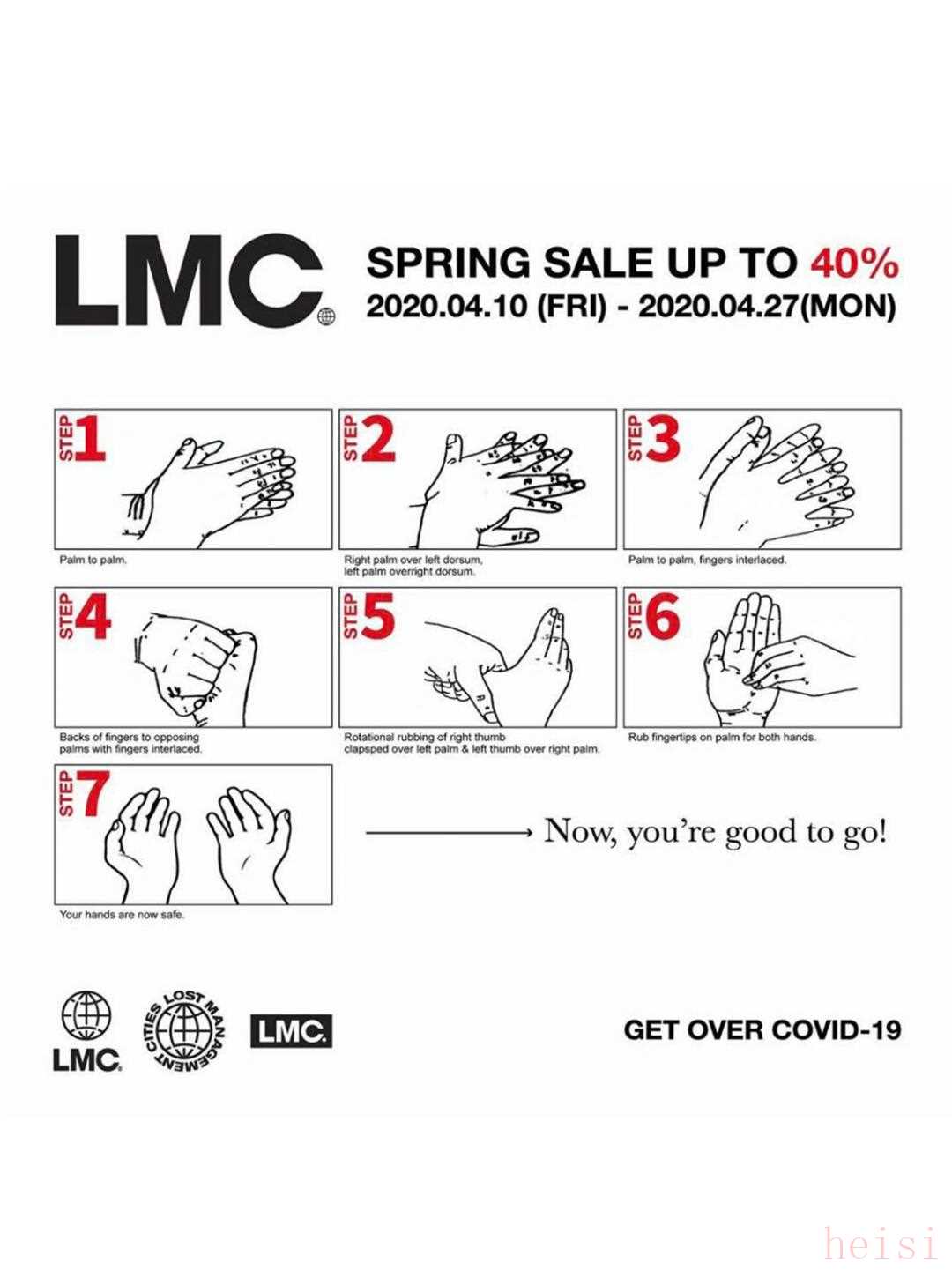 像这样有意义的联名,LMC还真推出了不少,在疫情期间,还专门为Coronavirus出了一款洗手指南图案的T-shirt,让人心里也是暖暖的。