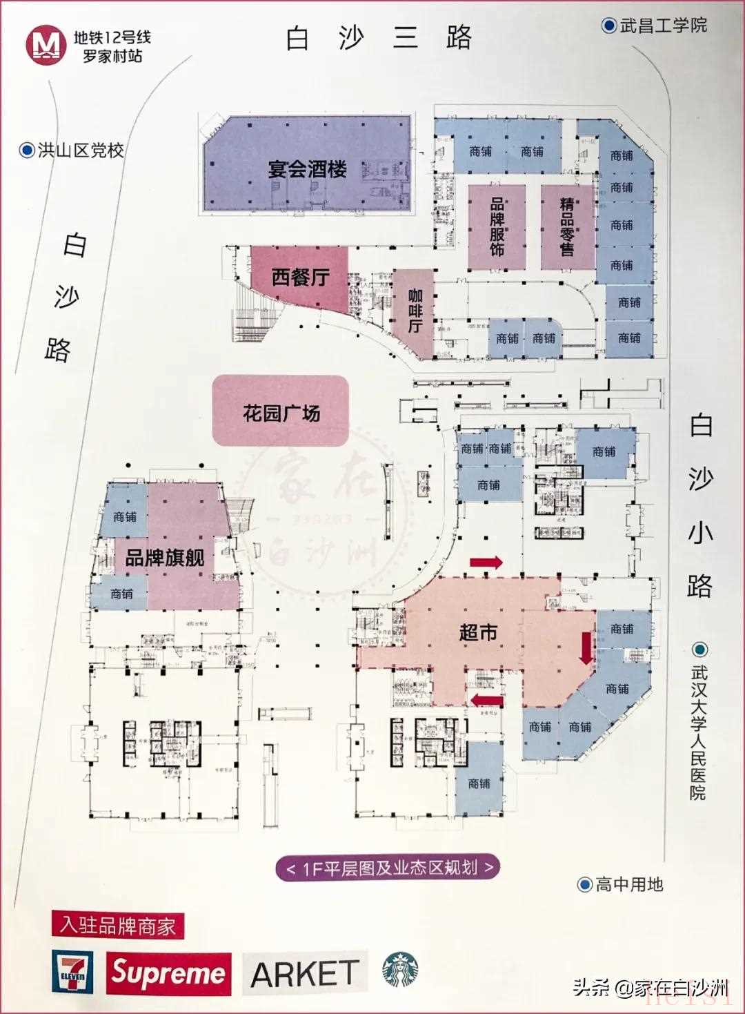 入住品牌有7字便利店、supreme、ARKET、星巴克品牌等。