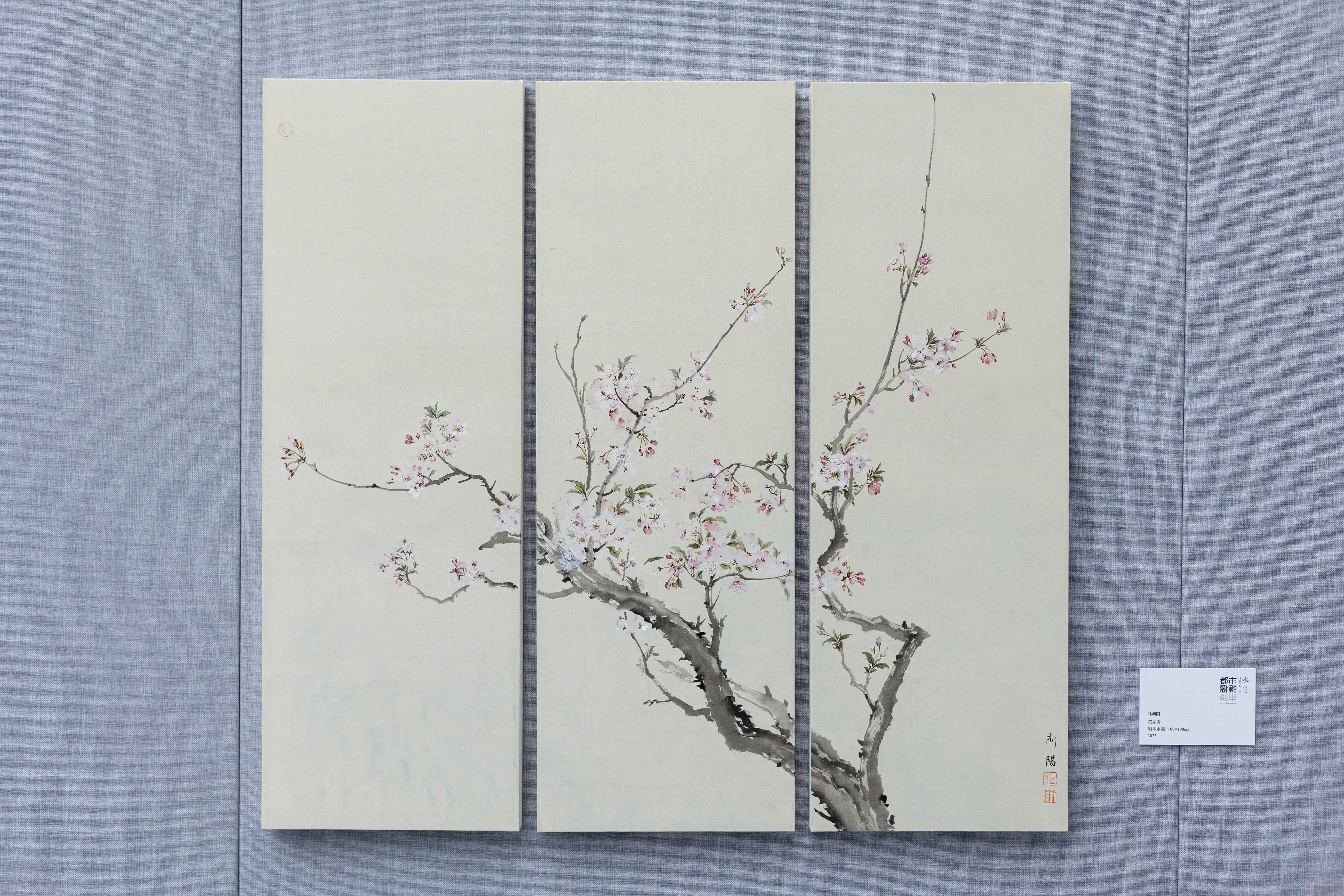 在展览现场,观众亦能欣赏到水墨最为淳朴的一面。如马新阳的四组花卉作品,《花如雪》是为配合本届樱花节特别创作的一幅水墨樱花作品。