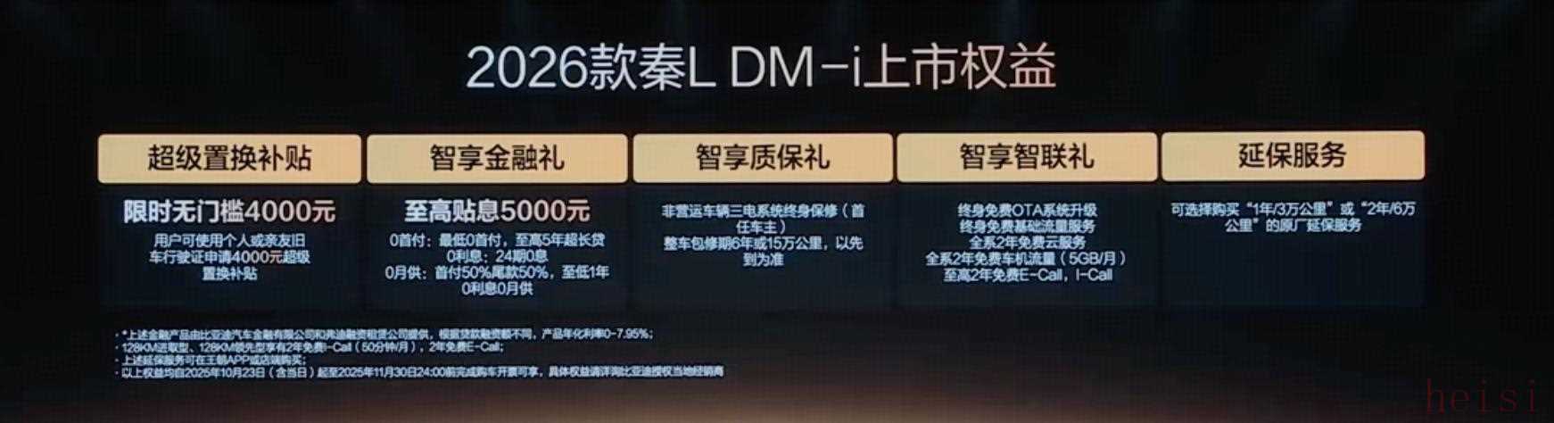 "新车|售9.68万元起 / 纯电续航128公里,2026款比亚迪秦L DM上市"