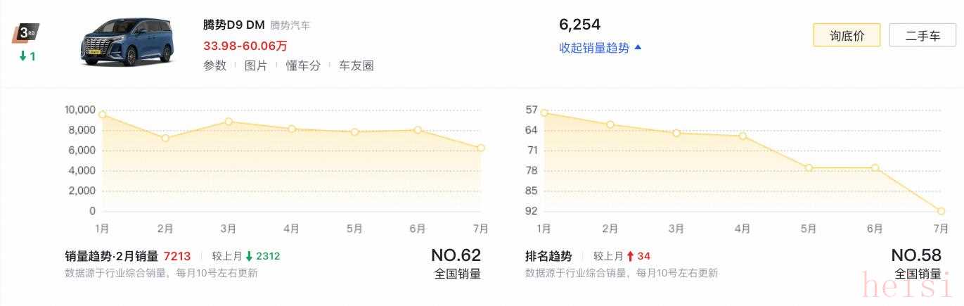 根据懂车帝销量排行榜显示,腾势D9 DM-i今年7月销量为6254辆,排在所有MPV车型第3位。该车在市场中的主要竞品包括岚图梦想家PHEV(指导价32.99万元起)、别克GL8 EV(指导价24.99万元起)、魏牌高山(指导价30.98万元起)等车型。关于腾势品牌的更多消息,懂车帝将持续关注。
