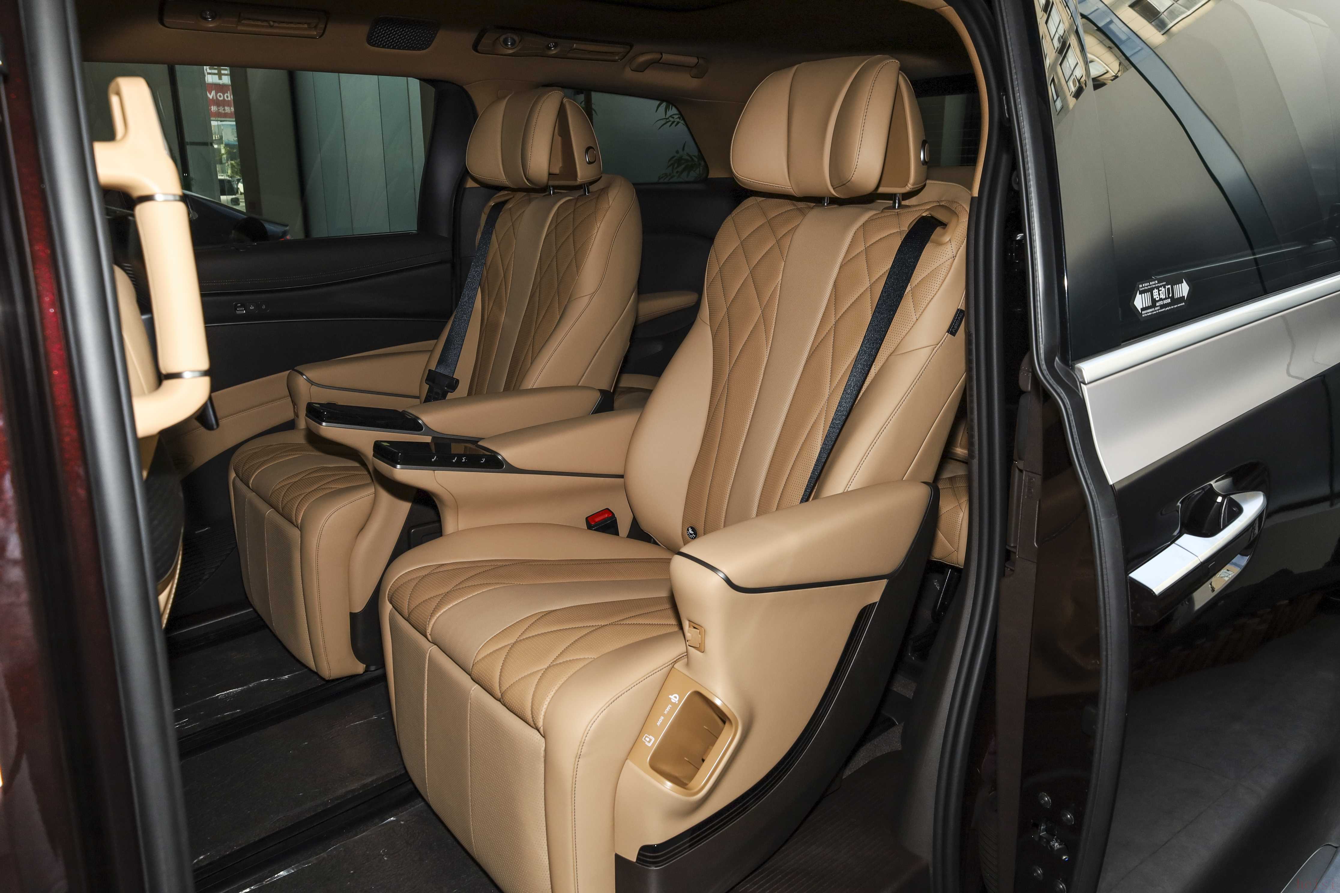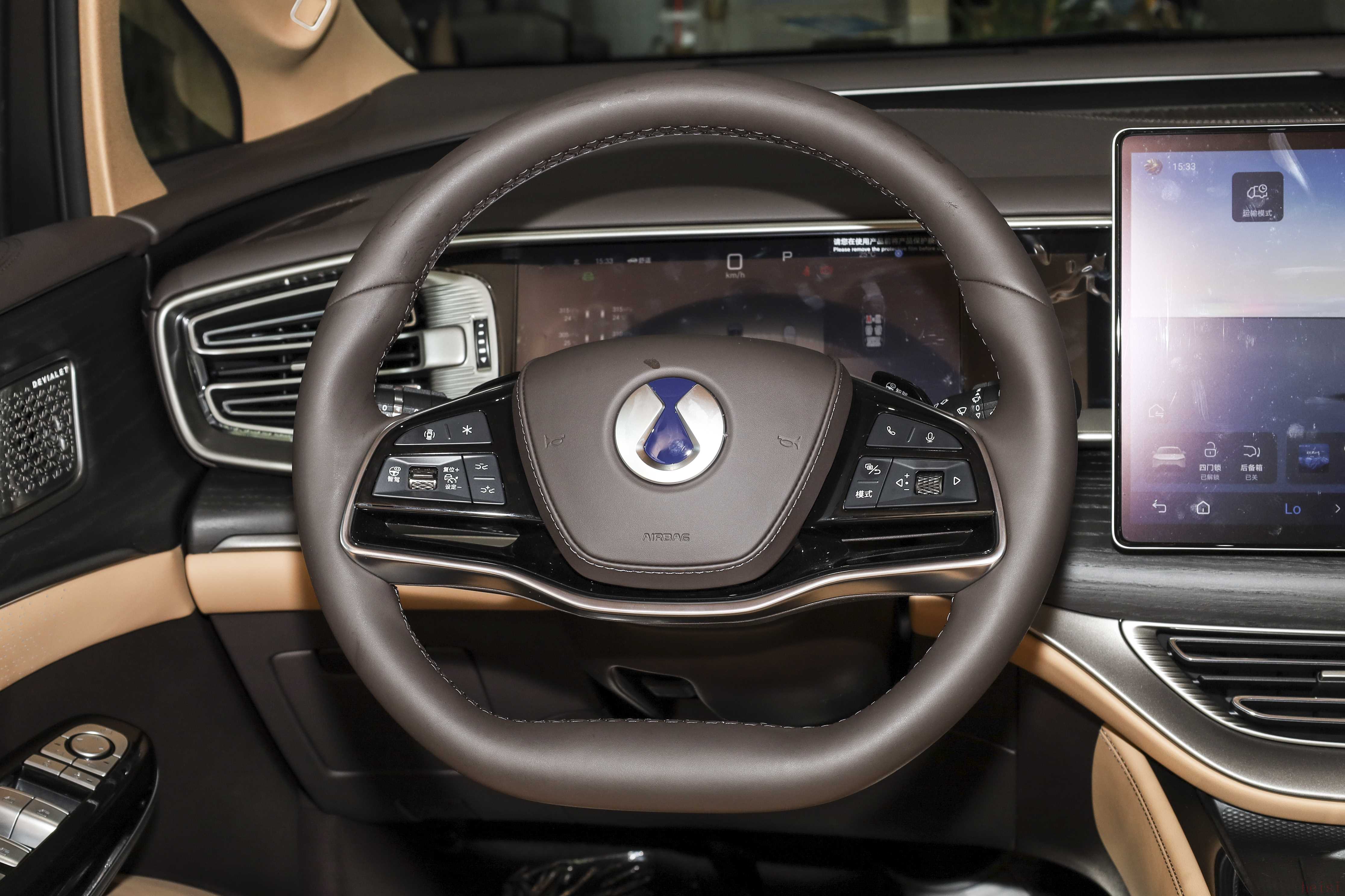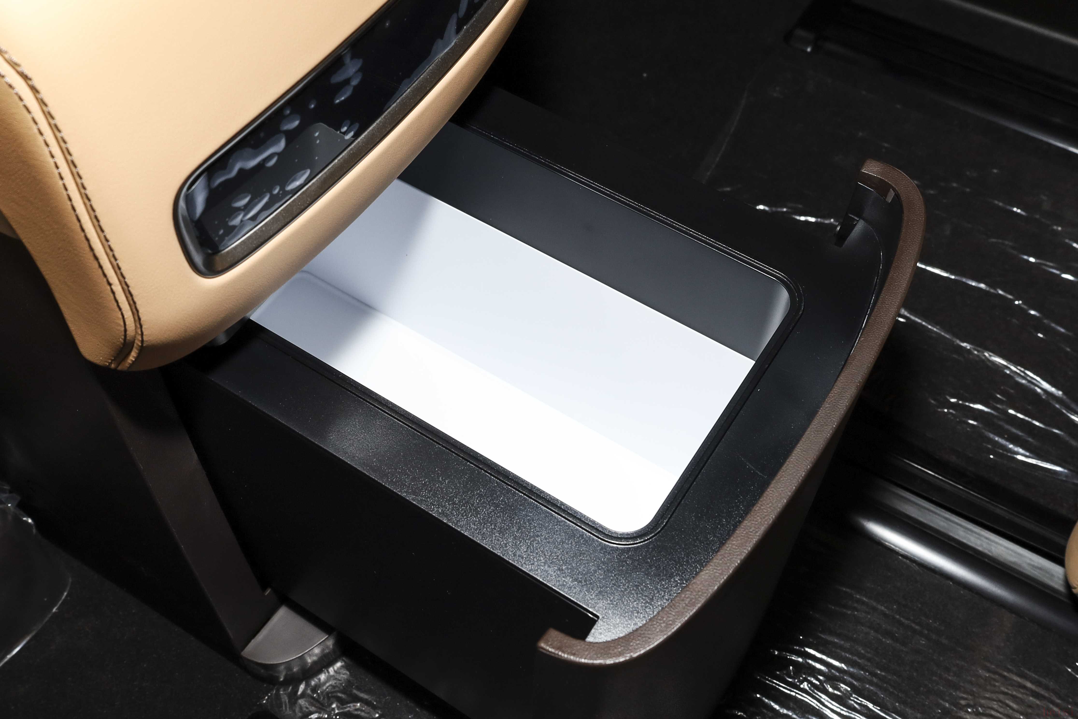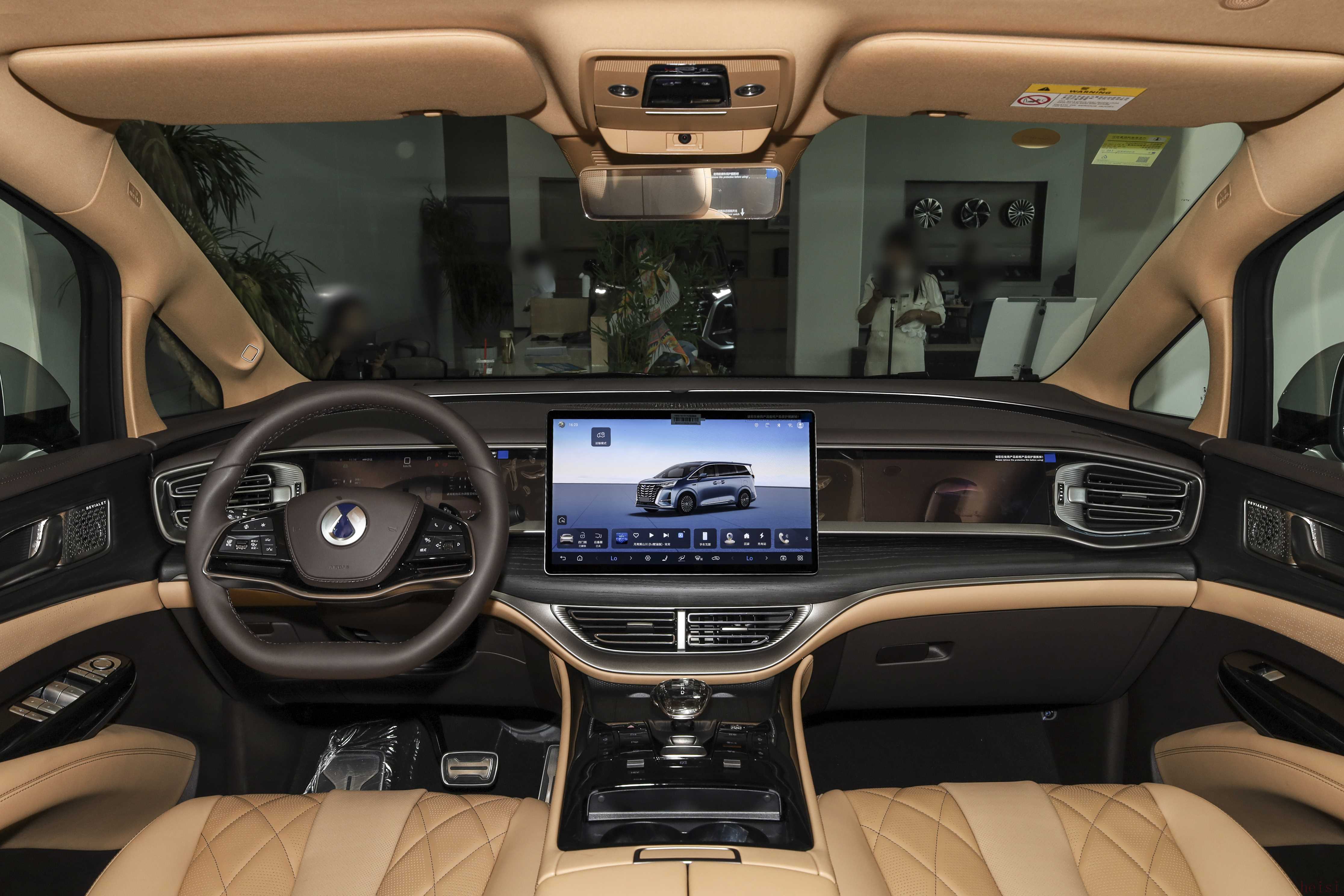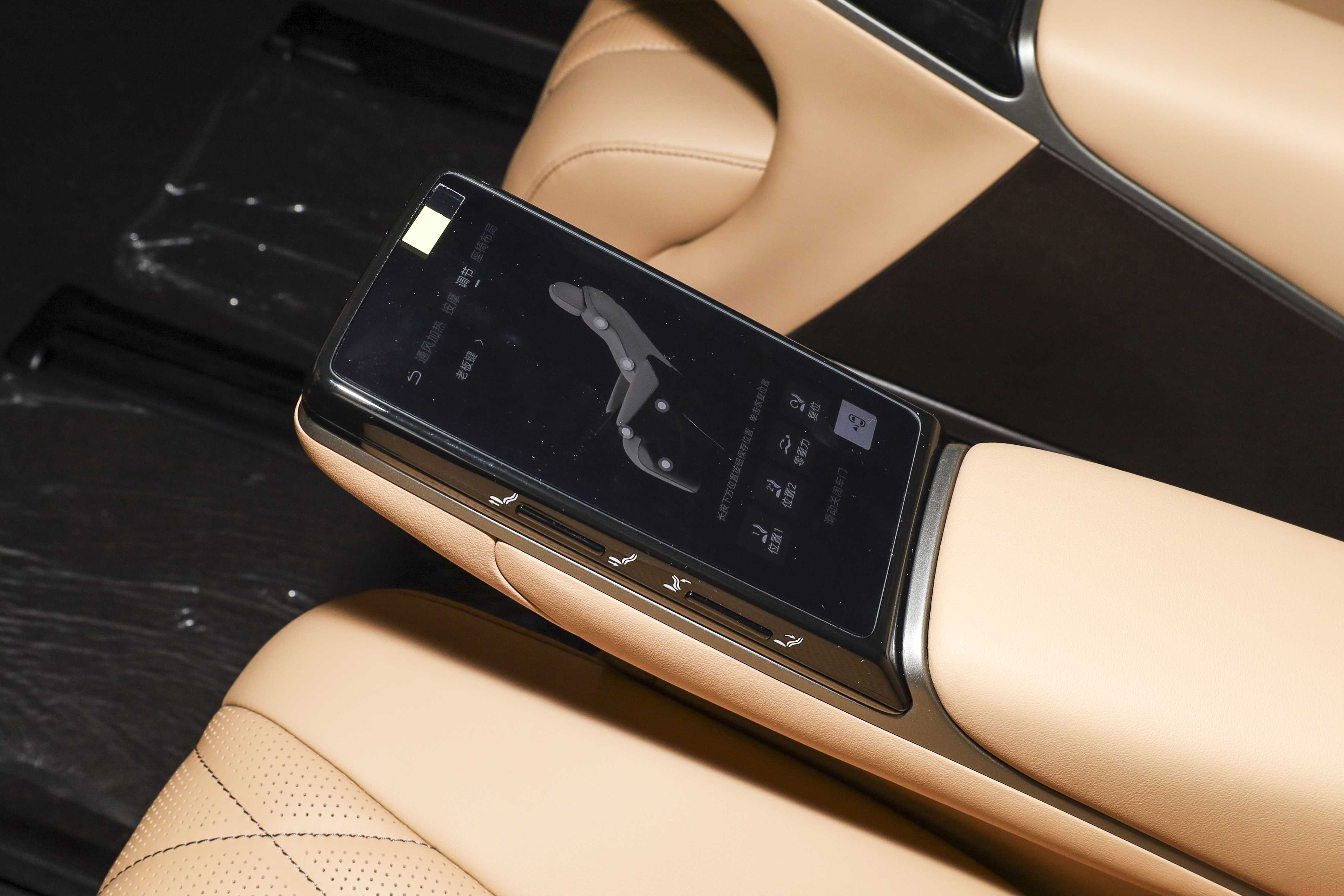 腾势D9 DM-i四驱至尊型车内依旧配备15.6英寸悬浮式中控屏、10.25英寸全液晶仪表、HUD抬头显示等配置,还提供10.25英寸副驾娱乐屏、18扬声器帝瓦雷音响系统、7.5升冷暖箱等。车内采用2+2+3式的7座布局,第二排配备两张零重力座椅,具有扶手屏、12.8英寸扶手屏等。