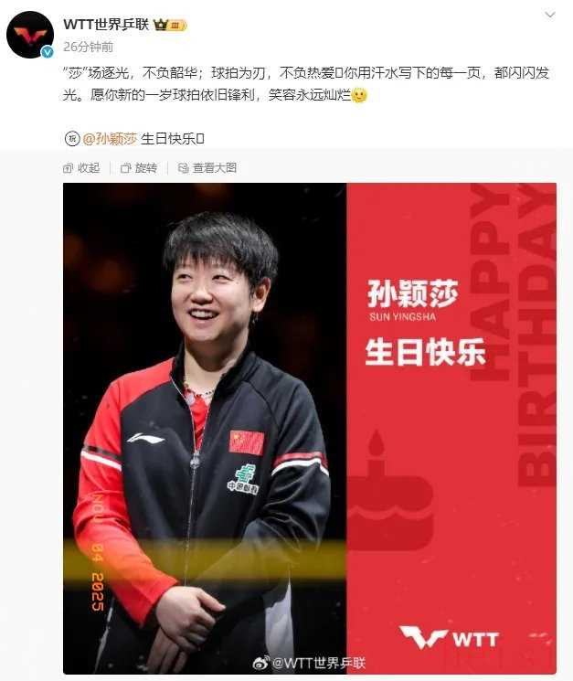 这场生日盛宴的规模,早已超越传统体育明星的庆生范畴。国际奥委会官方发布她的赛场集锦,WTT世界乒联用“球拍为刃,不负热爱”致敬;央视记者李武军则以“志之所趋,无远弗届”的古文寄寓厚望。而粉丝的应援更显“硬核”——从北上广深地标大屏轮播祝福,到以她的名义向福利院捐赠,甚至自发制定《官宣日购买SOP》12项流程,用63%复购率筑起商业护城河。