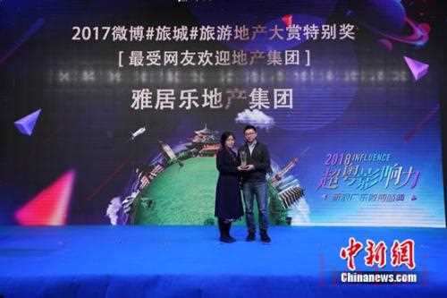 雅居乐地产获2017微博#旅城#旅游地产大赏特别奖-最受网友欢迎地产集团