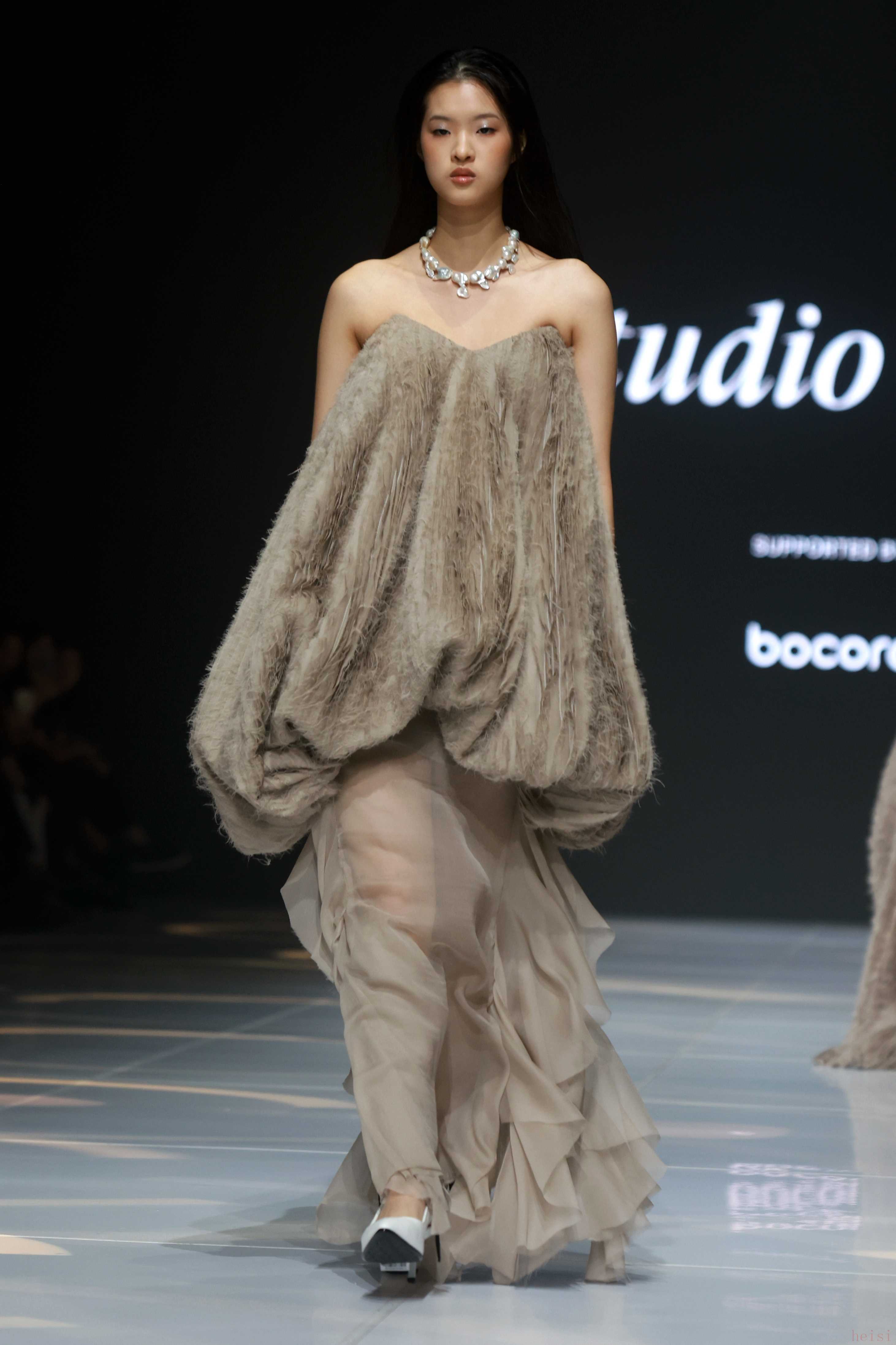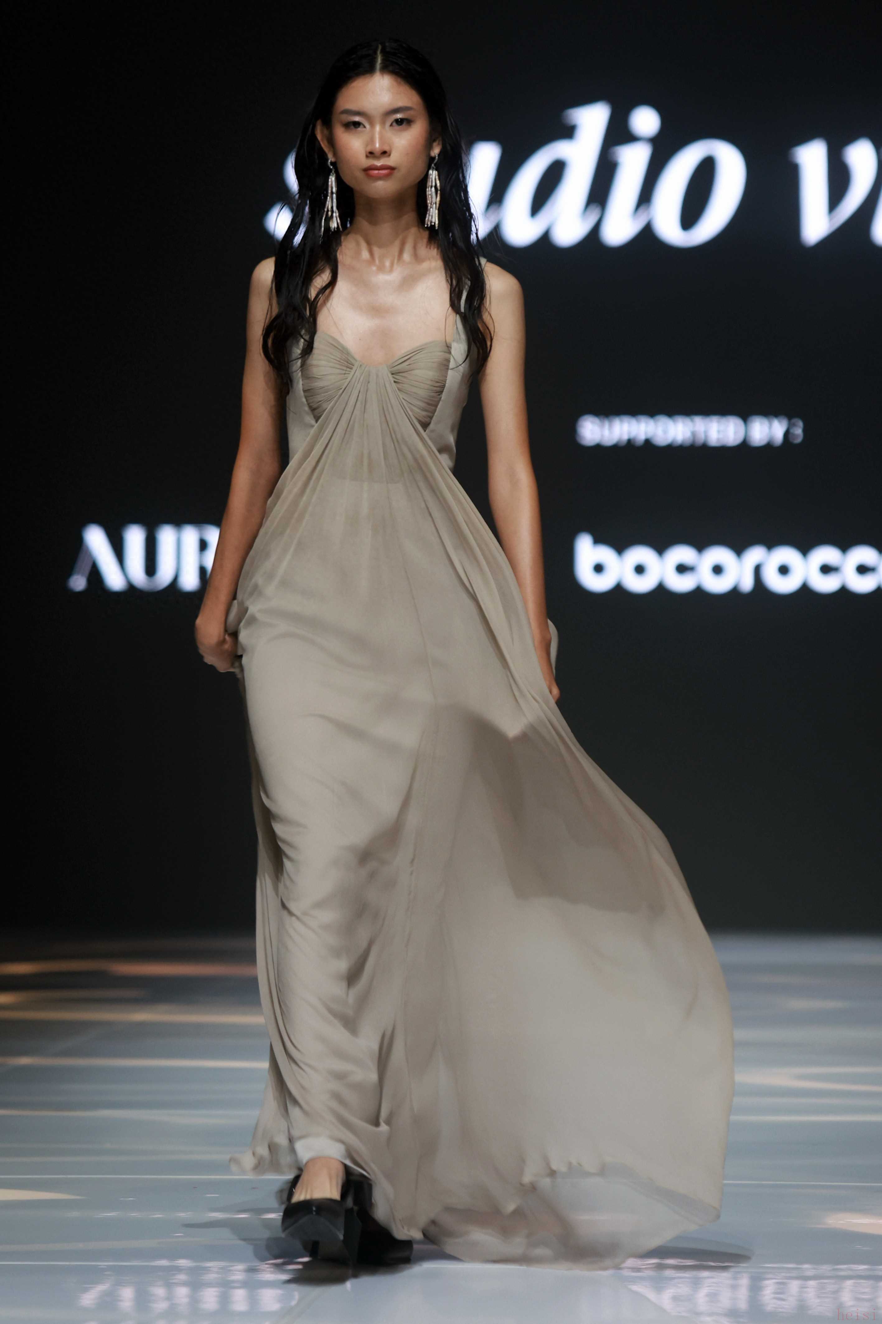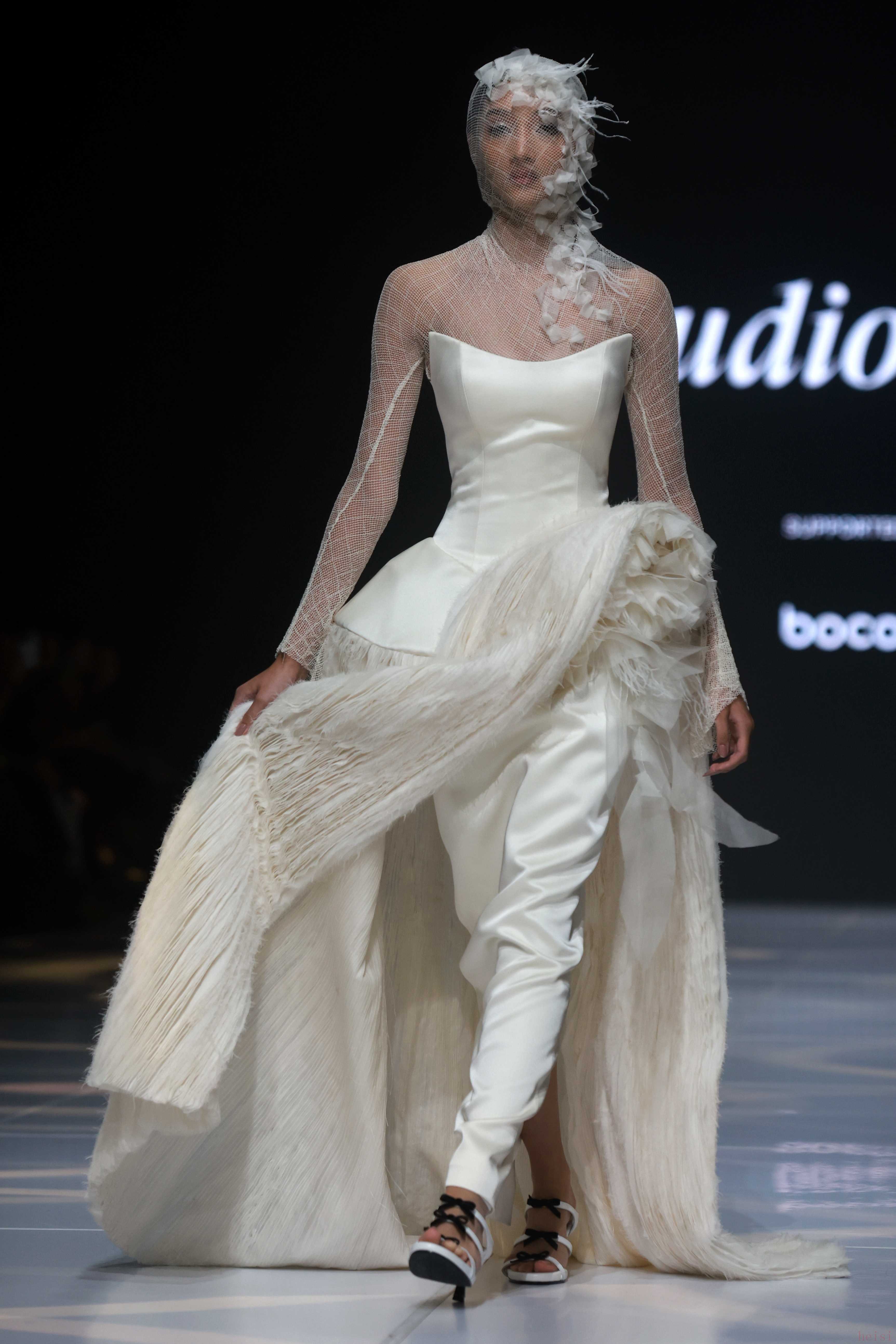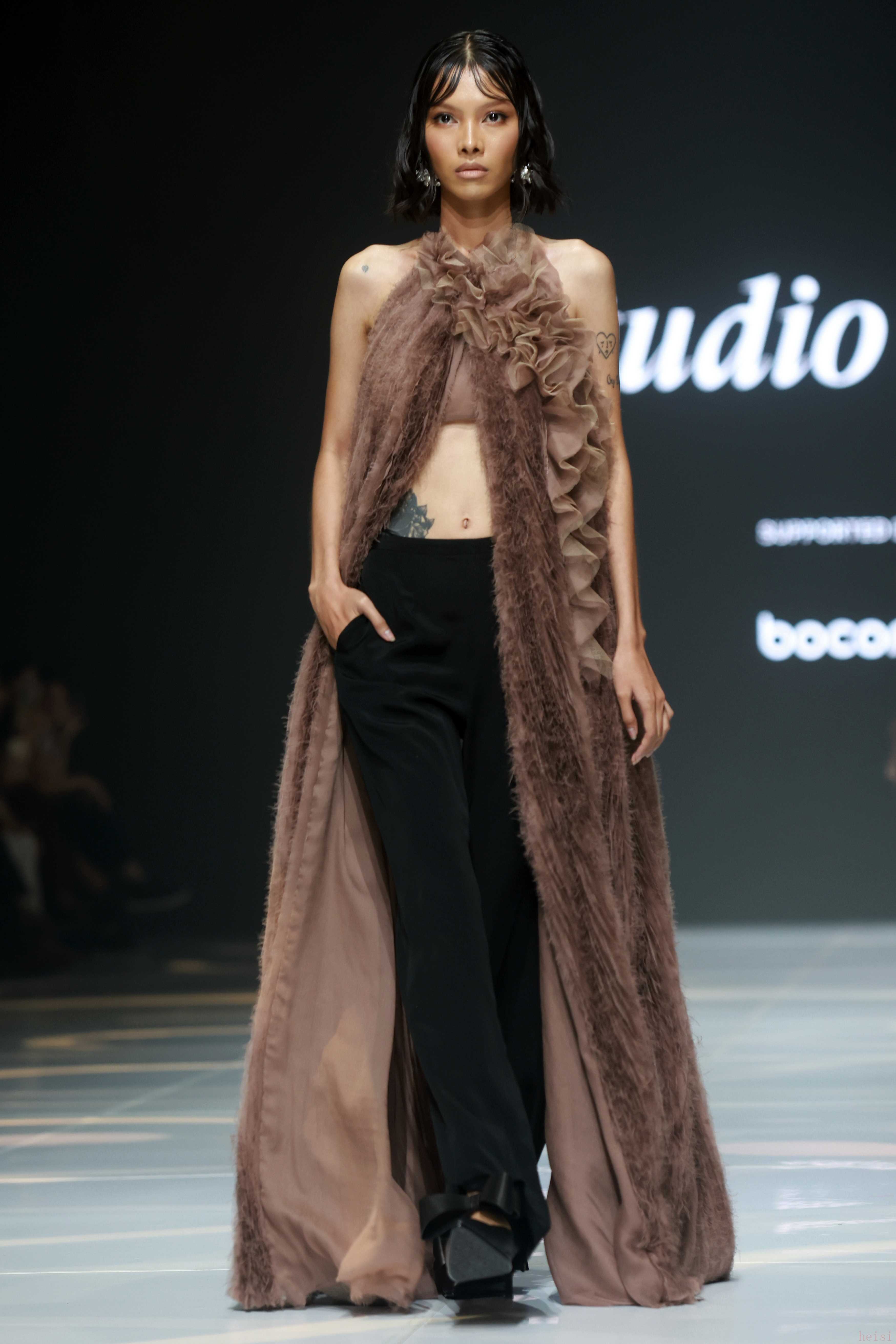 1. "品牌定位:" Studio Vian通常被视为雅加达时装周上备受瞩目的本土设计师品牌之一。本次秀场继续其探索印尼本土文化、传统工艺与现代时尚融合的叙事。