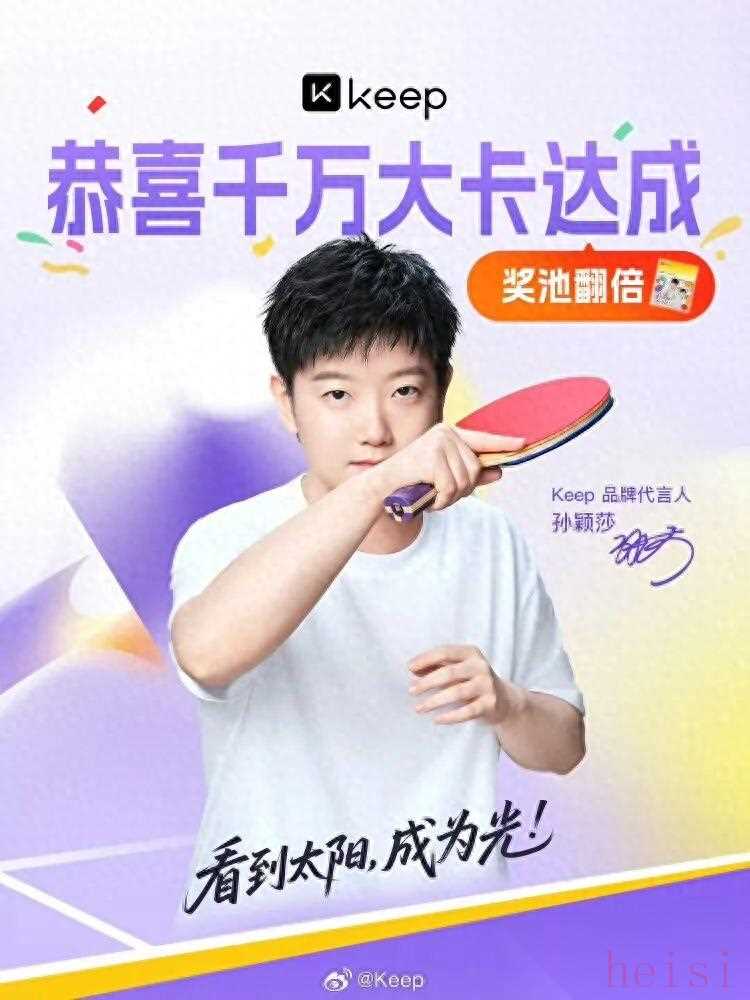 2. "孙颖莎 代言 Keep":中国乒乓球运动员孙颖莎正式宣布成为运动健身平台 Keep 的代言人。