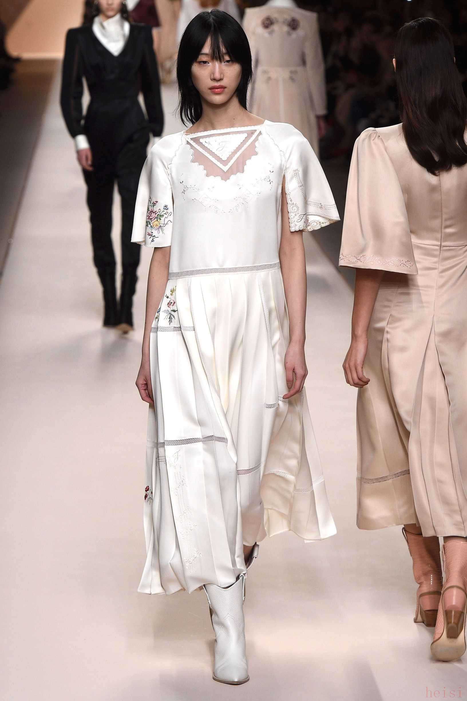 2月22日,在意大利米兰时装周上,模特展示芬迪(Fendi)品牌2018/19秋冬女装新品。