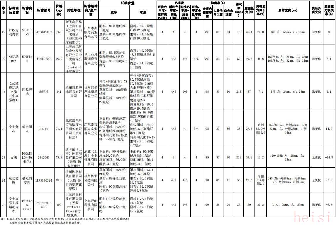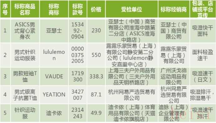 7月29日,上海市消保委发布40款运动内衣(其中女式运动内衣(文胸)25件,男式运动背心、T恤、针织衫等运动上衣15件)比较试验结果。结果显示,亚瑟士、迪卡侬、网易严选等5款产品,吸湿速干性实测与宣传不符。