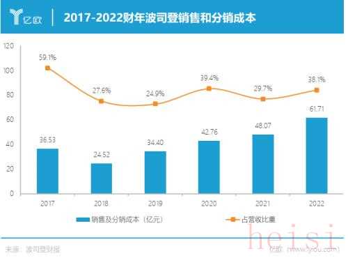 此前的2020财年和2021财年,波司登销售分销开支分别为42.76亿元和48.07亿元,占集团总营收分别为39.4%和29.7%。整体来看,波司登每年花在营销上的费用要占总营收的近4成。