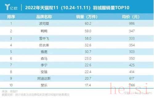 商指针数据显示,今年双11热销的羽绒服品牌均价也大多在500元以下。
