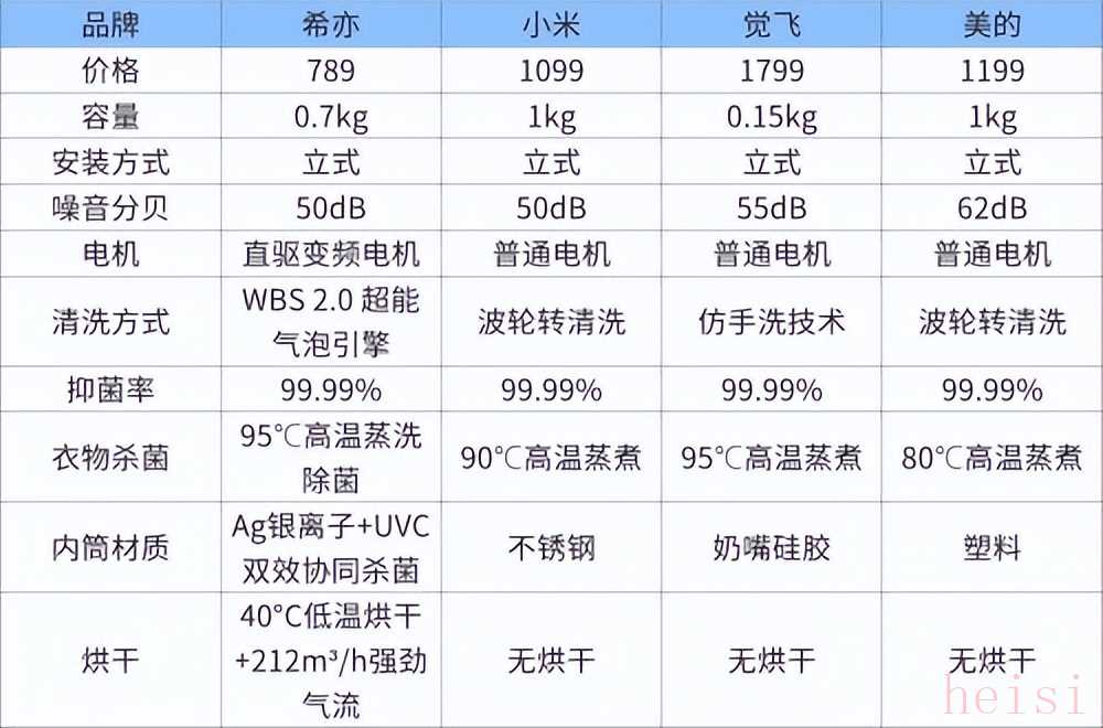 正式进入推荐之前,我给大家汇总了一张内衣洗衣机的数据参考表,大家可以看一下~