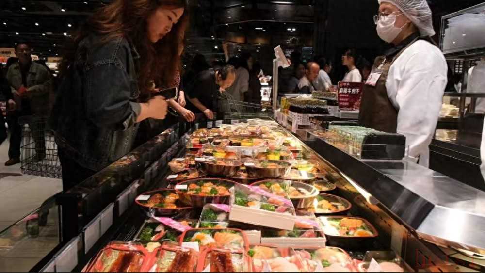 熟食区以明档操作,营造出浓郁的烟火氛围。在这里,消费者可买到新鲜出炉的张飞牛肉、万州烤鱼、禽始皇酱板鸭、“胖东来同款”小甜肠、秘制牛肉条等熟食。