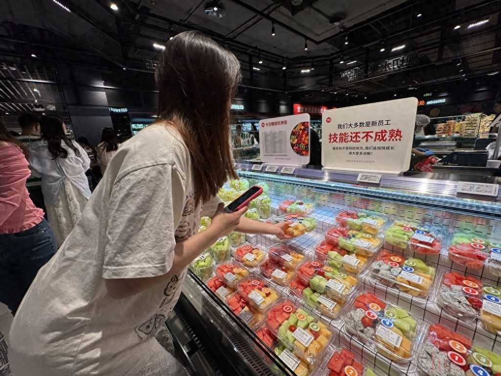 此次调改,力度空前,商品实现“大换血”,汰换率达70%,下架12943个单品,新增9291支商品,烘焙、熟食等鲜食比例从5%跃升至28%,调整后的商品结构接近胖东来商品结构的80%以上,进口商品占比近20%,为消费者带来耳目一新的购物体验。在生鲜区,永辉将“鲜味儿”端上餐桌。不仅有韭菜、奶白菜、菜心等有机蔬菜,超市为保持鲜度还引入水白菜、大娃娃菜、贝贝南瓜等定向种植蔬菜,借助前沿种植技术,构建起“从田间到货架”极速配送链路,牢牢锁住生鲜的鲜嫩与营养,且引进了洪湖粉藕、樟树小辣椒、恩施小土豆地域特色蔬菜;本地忠州土猪、鲜切潮汕拼盘、进口天翠庭新西兰牛肉等肉禽满足消费者一站式需求。