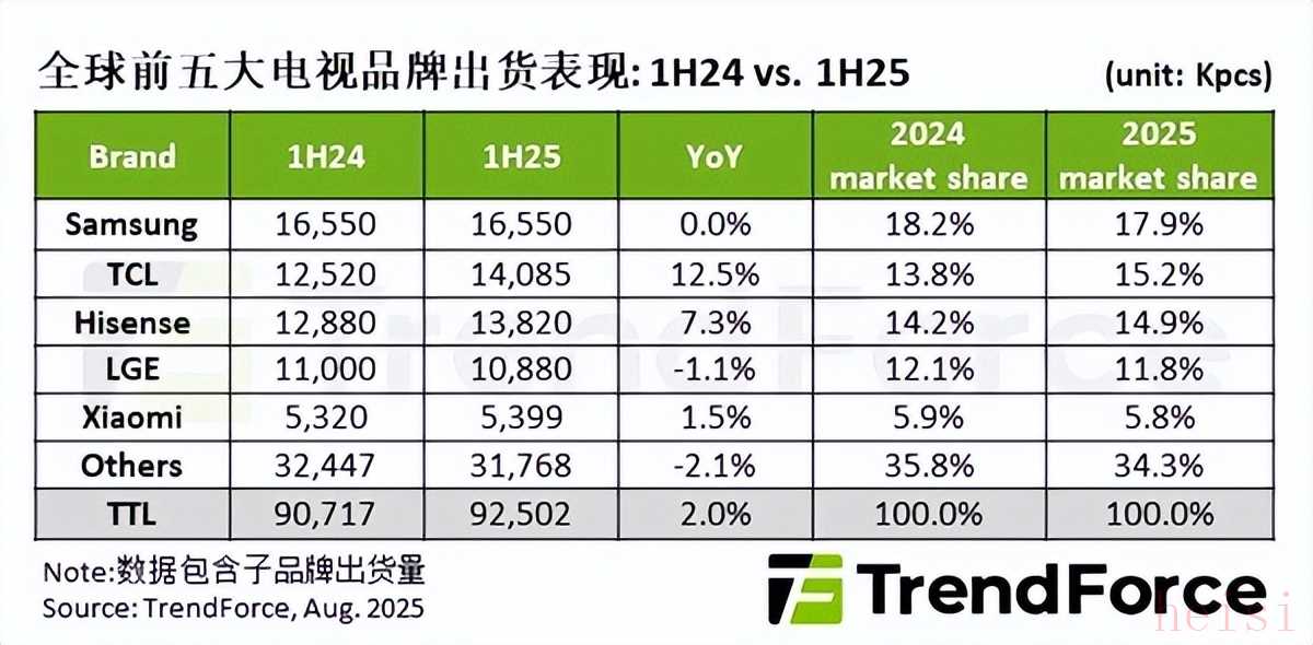 而TrendForce集邦咨询最新数据显示,TCL上半年出货1408.5万台,同比大增12.5%,市场份额提升至15.2%,稳居前二,老外都很是喜欢。