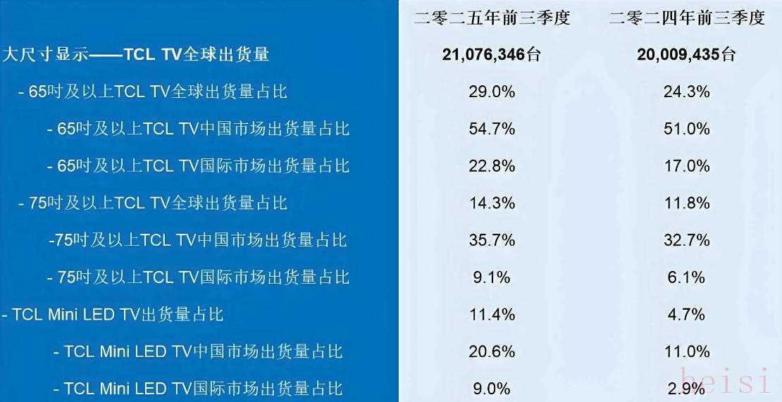 就在不久前,TCL公布了2025年前3季度全球电视出货量,全球累计出货量达2,108万台,同比增长5.3%。其中,中高端产品Mini LED电视的全球出货量,同比大幅增长153.3%。