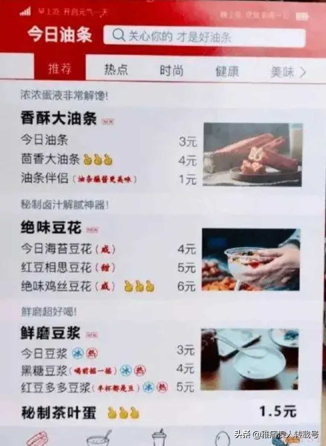数月前,河南一家名为“今日油条”的早餐铺吸引了大家的眼球,这家店铺的名字、装修、菜单以及logo都与“今日”极其相似,就连标语都改成了“关心你的,才是好油条。”