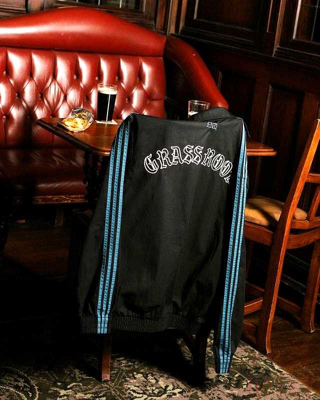 END.把系列命名成GrassRoots,中文直译草根,海报拍摄地选在英国东北部矿区酒吧,墙面剥落,地毯带啤酒味,模特穿灯芯绒长裤、针织背心,脚踩网眼Gazelle,场景就是父辈周末看球的标准打扮。