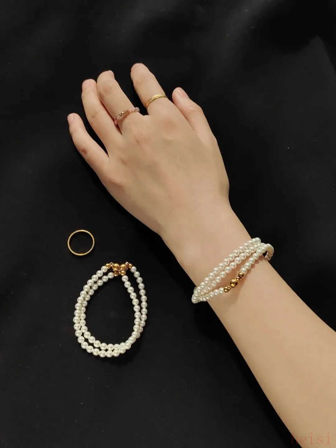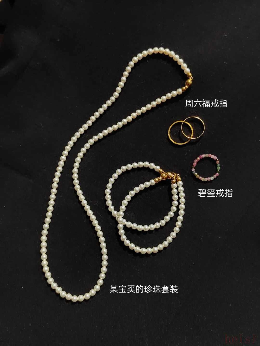 珍珠项链和两条手链是一套的,直接戴总觉得有点普通,没什么意思,再加上我的脖子有点敏感,也不太适合经常戴项链。