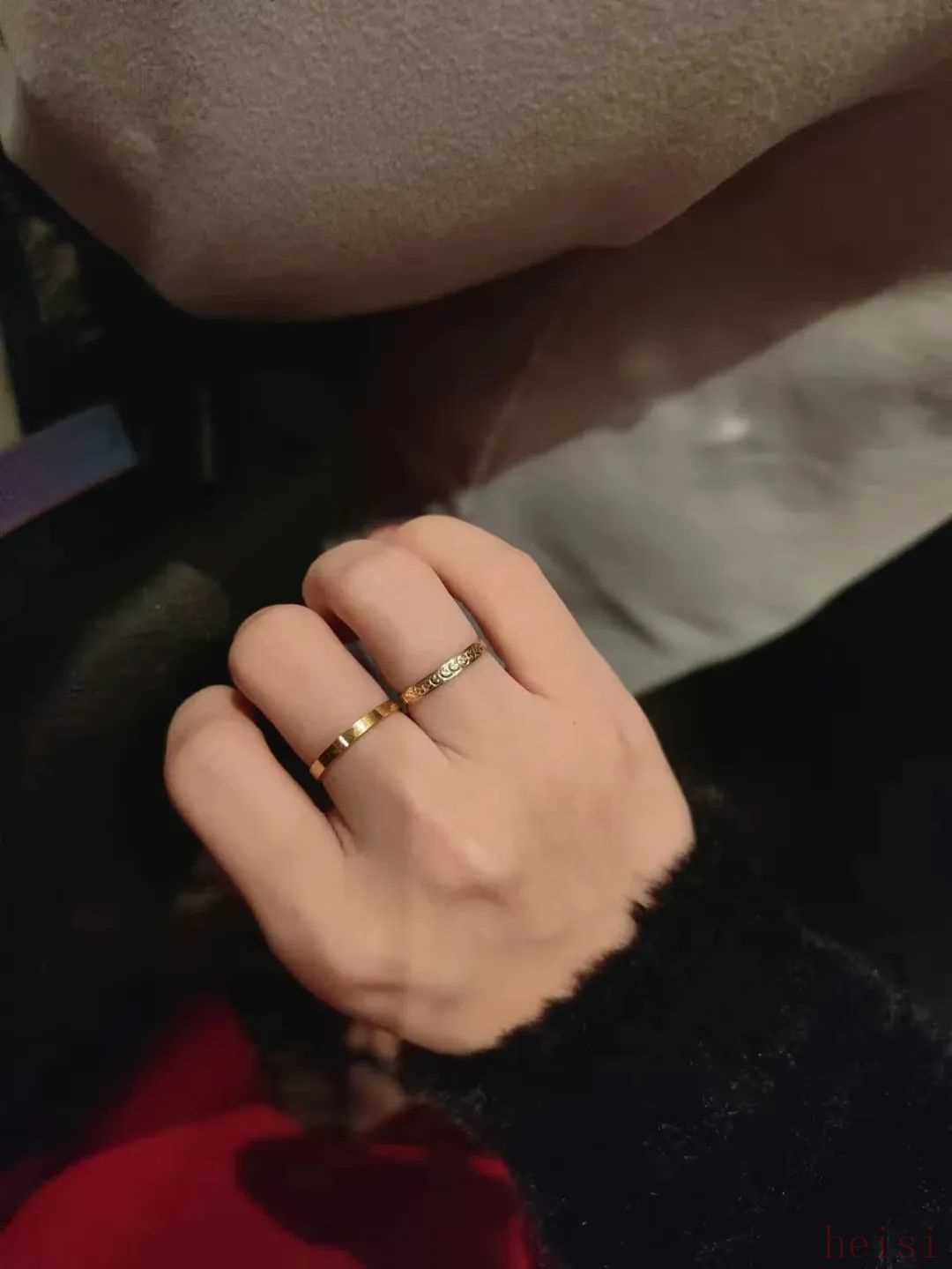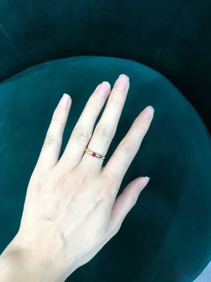 由于硬度要求,这种工艺只有18k金可以做,所以我这枚也是18k金的,会比纯金色更浅,也挺衬肤色。它也很适合叠戴,和我的纯金戒指/碧玺戒指都很合得来,春夏秋冬都在用。▼