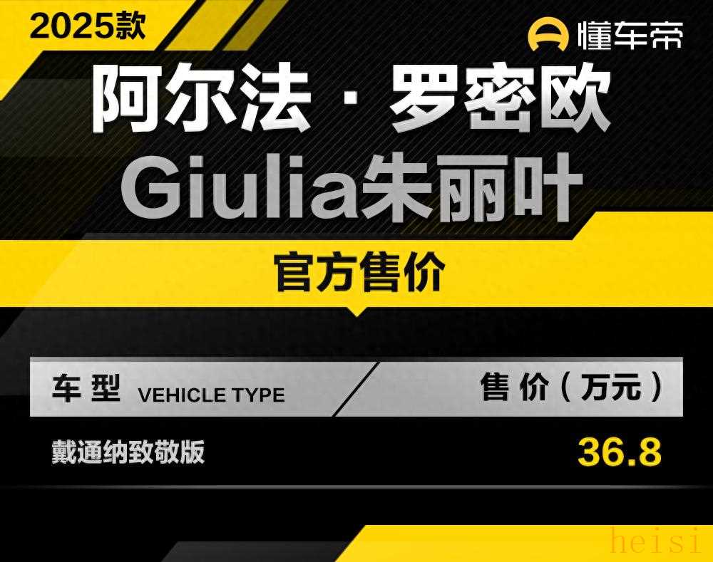 "新车 | 售36.8万元,阿尔法·罗密欧Giulia朱丽叶戴通纳致敬版上市"