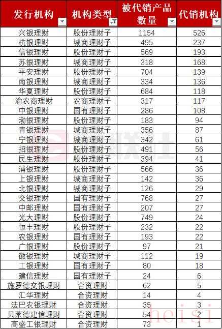根据法询金融数据,财联社还注意到,有接近三分之一的中小银行只代销了一家机构的理财产品,主要是兴银理财。