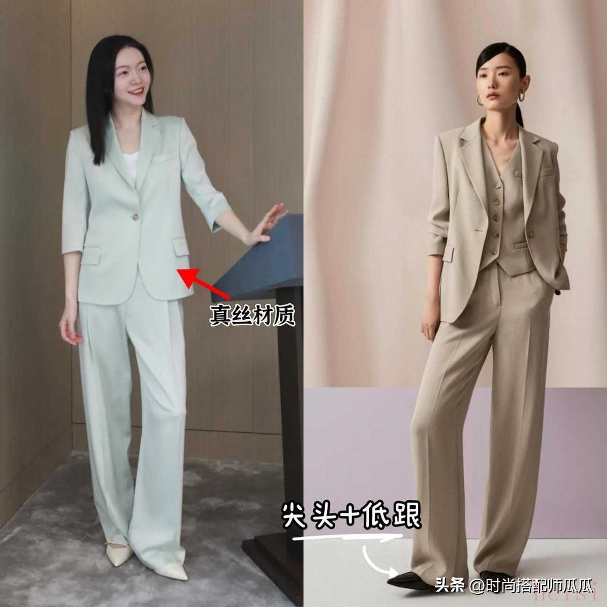 场景3.职场通勤——薄款西服套装+尖头低跟鞋