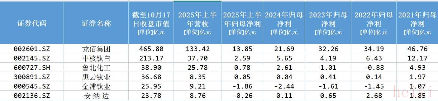 龙头老大龙佰集团2021年至2024年,归母净利润从46.8亿元降至21.7亿元。