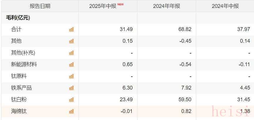 不过这两大业务也处于内卷中。海绵钛与新能源材料两项业务营收尽管均保持了增长,但盈利能力并不乐观。2024年、2025年上半年新能源业务营收分别达9.18亿元、5.27亿元,海绵钛业务分别达26.47亿元、14.9亿元。新能源业务在2024年处于亏损状态,海绵钛在2025年上半年毛利也未能盈利。