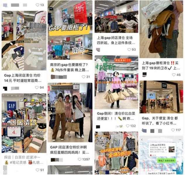 近日,有不少用户在小红书、大众点评上奔走相告GAP的撤店信息,北京、上海、广州、南京等多地的GAP门店正在清仓甩卖,进入关店倒计时。