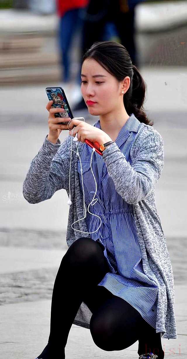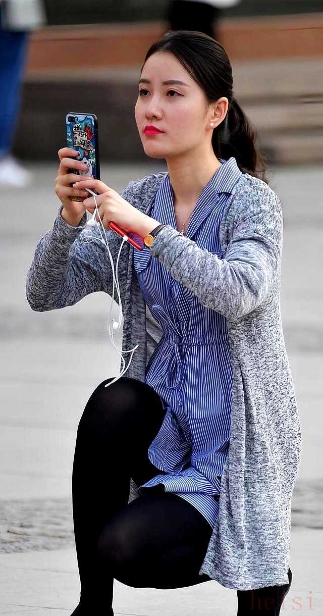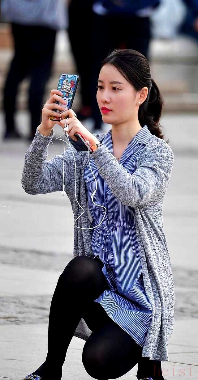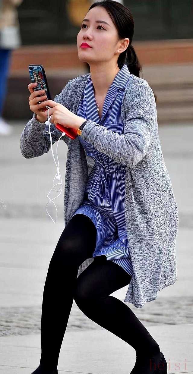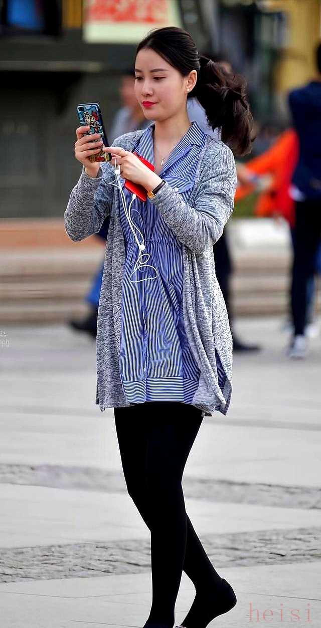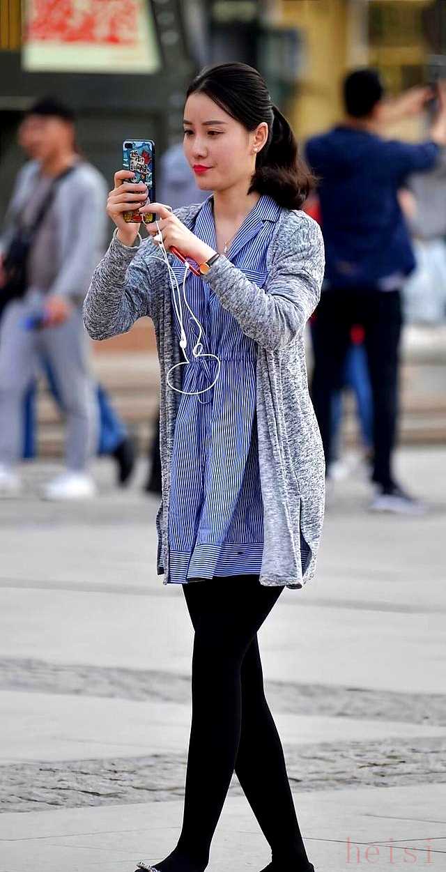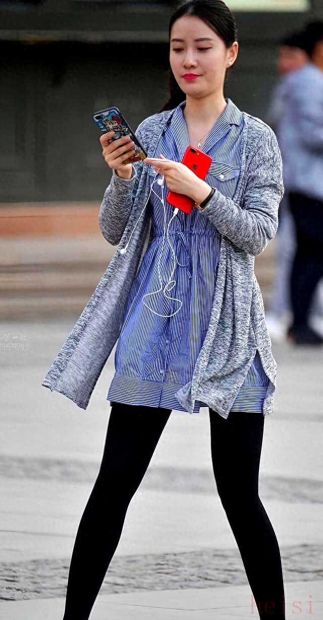让我们用文字描绘这幅“条纹裙与灰开衫”的都市街头画卷,谱写一首温柔时尚的诗: