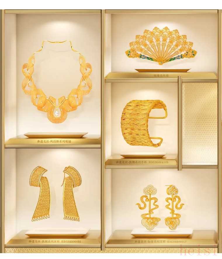 潮宏基与故宫合作的“花丝秘境”高定线,复刻明清宫廷花丝工艺。