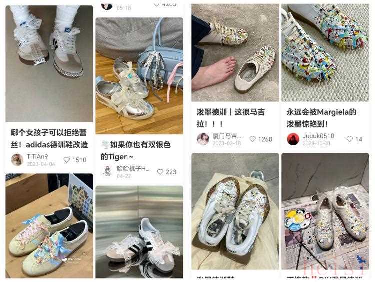 对DIY玩家来说,德训鞋也有很大空间去发挥创意,可以用蕾丝花边、彩色丝带、珍珠领结等元素,给鞋子进行精装修,remake独一无二的德训鞋。