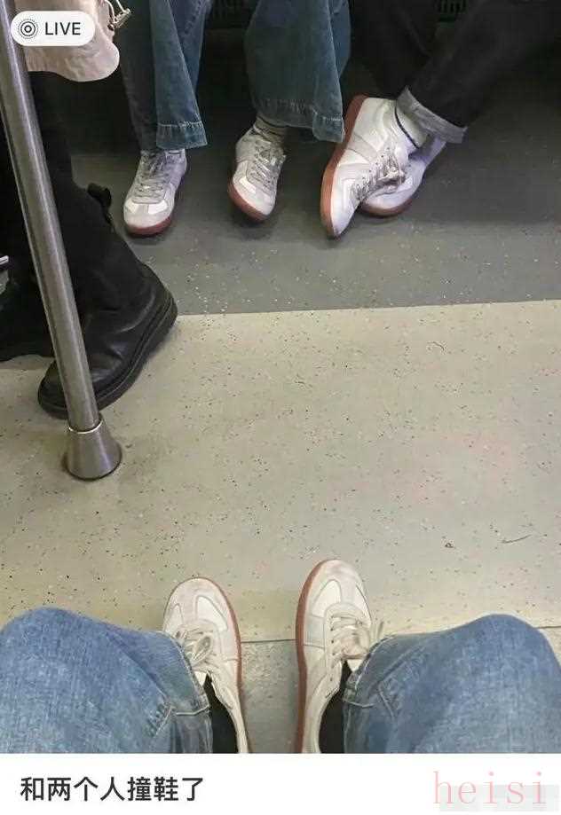 网友:地铁上一低头就撞鞋了