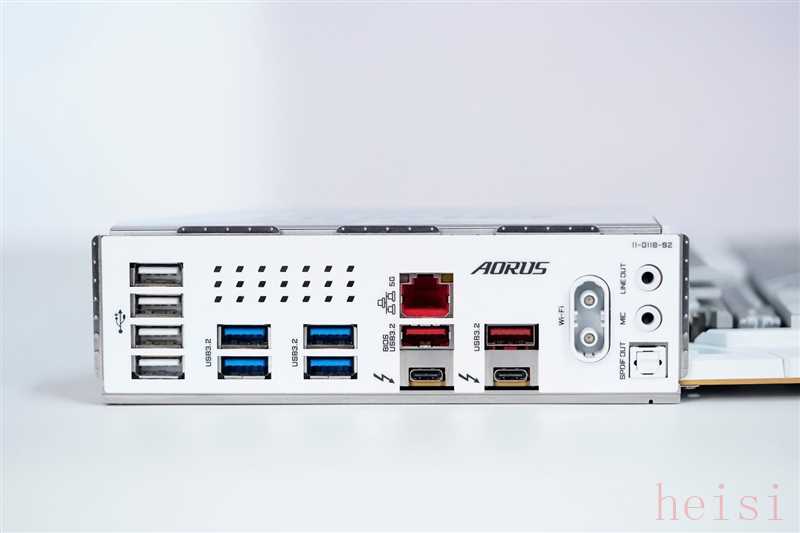 除此之外技嘉Z890 AORUS XTRME AI TOP主板还提供了高达十个USB接口,一个5G有线网口,Wi-Fi 7的快拆天线接口,一组支持数字音频光纤的音频输出接口。