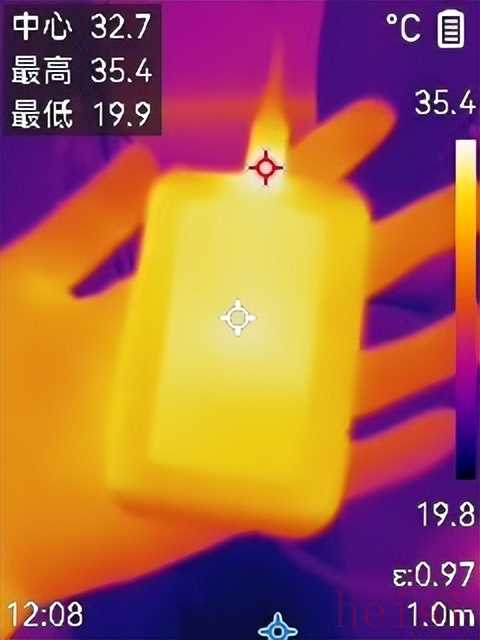 在热成像仪下,LaCie Rugged SSD4金刚钻Plus在工作时外壳温度只有35度,温度控制非常优秀。