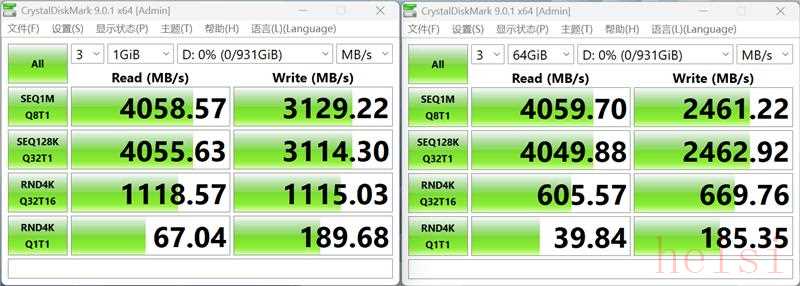 在CrystalDiskMark测试中,LaCie Rugged SSD4金刚钻Plus的连续读写速度直接突破4000MB/s,写入速度也能超过3000/s,1GB和64GB测试结果差别不大。