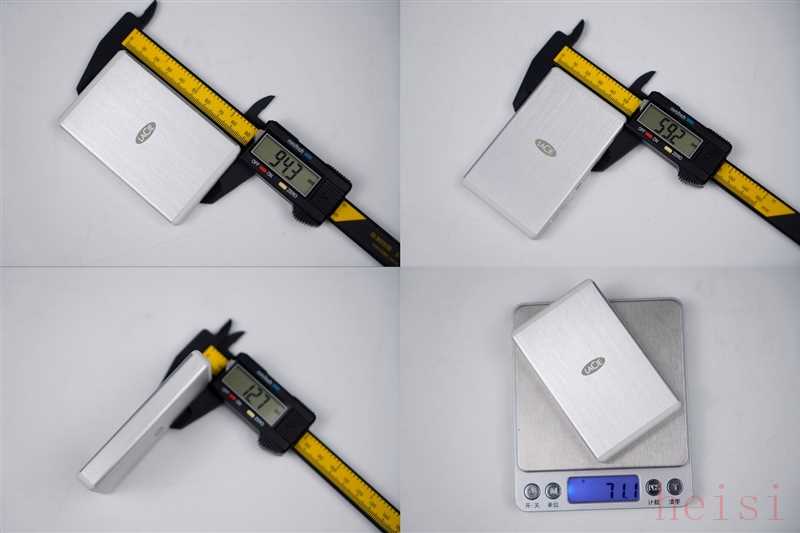 内部的移动SSD本体长度约为94mm,宽度约为59mm,厚度约13mm,重量下降到71g左右,牺牲了超强的防护能力可以换来更好的便携性。