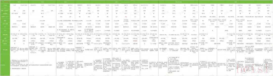 请注意,是在售产品,老款的产品或者下架的就不在这个表格里。