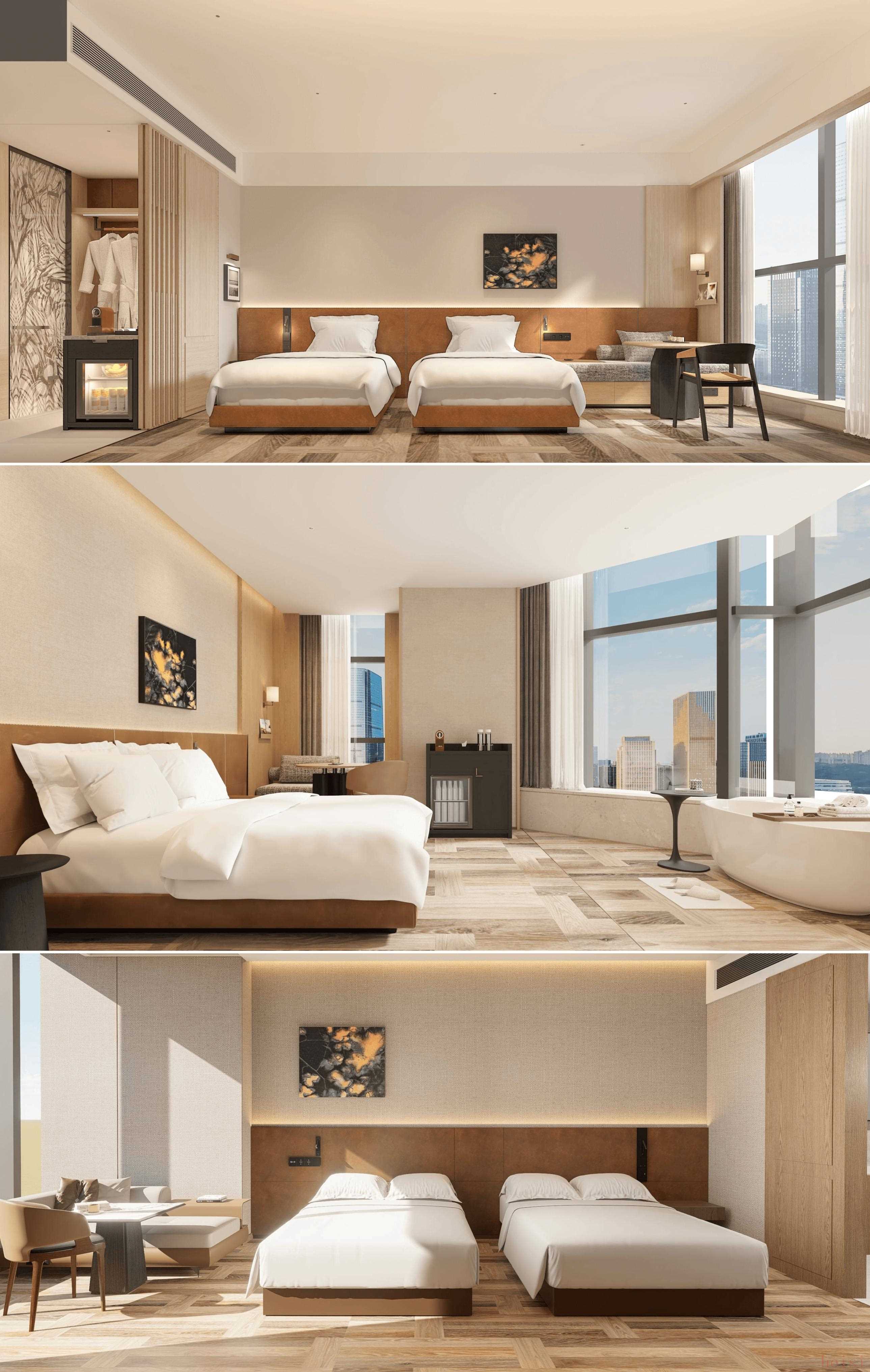 中端投入,星级体验美豪丽致酒店武汉旗舰店不仅仅满足于提供便利的地理位置,更致力于以中端的投入为宾客打造星级的住宿体验。酒店从空间设计到服务体系,均延续了品牌一贯的特色,并深度融入武汉本土文化元素,营造出别具一格的城市生活方式。大堂以武汉地标黄鹤楼为灵感,通过现代设计手法转译在地文化,展现出独特的品牌辨识度。客房则全部设于高空楼层,配备全景落地窗,视野开阔,品质卓越,满足不同宾客的多样化需求。