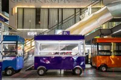 来到银泰城步行街,映入眼帘的是“烟火城南”广场门头和“我爱海宁”亚克力3D展示灯箱打卡点,一辆辆高颜值标准化网红餐车整齐排列,产生油烟类型的餐饮摊位餐车内自带油烟净化设施。