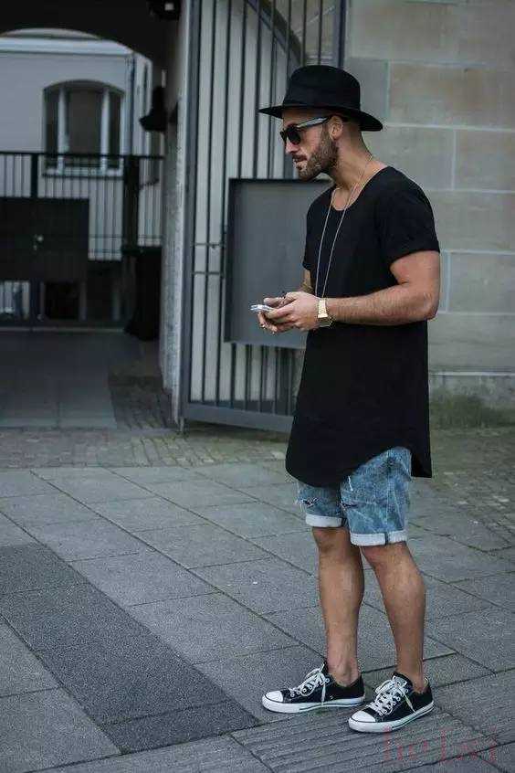 最后说下短裤的选择,大多数天气里你可能还用不到它,不过气温持续上升之后,你会喜欢这种凉爽的裤子,帆布制成的匡威透气,一条到大腿中或到膝盖的短裤不会影响你的造型,还能有相当不错的穿着体验。